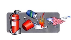 ▲施工場所內應備有適當的滅 火設施,以應不時之需。
