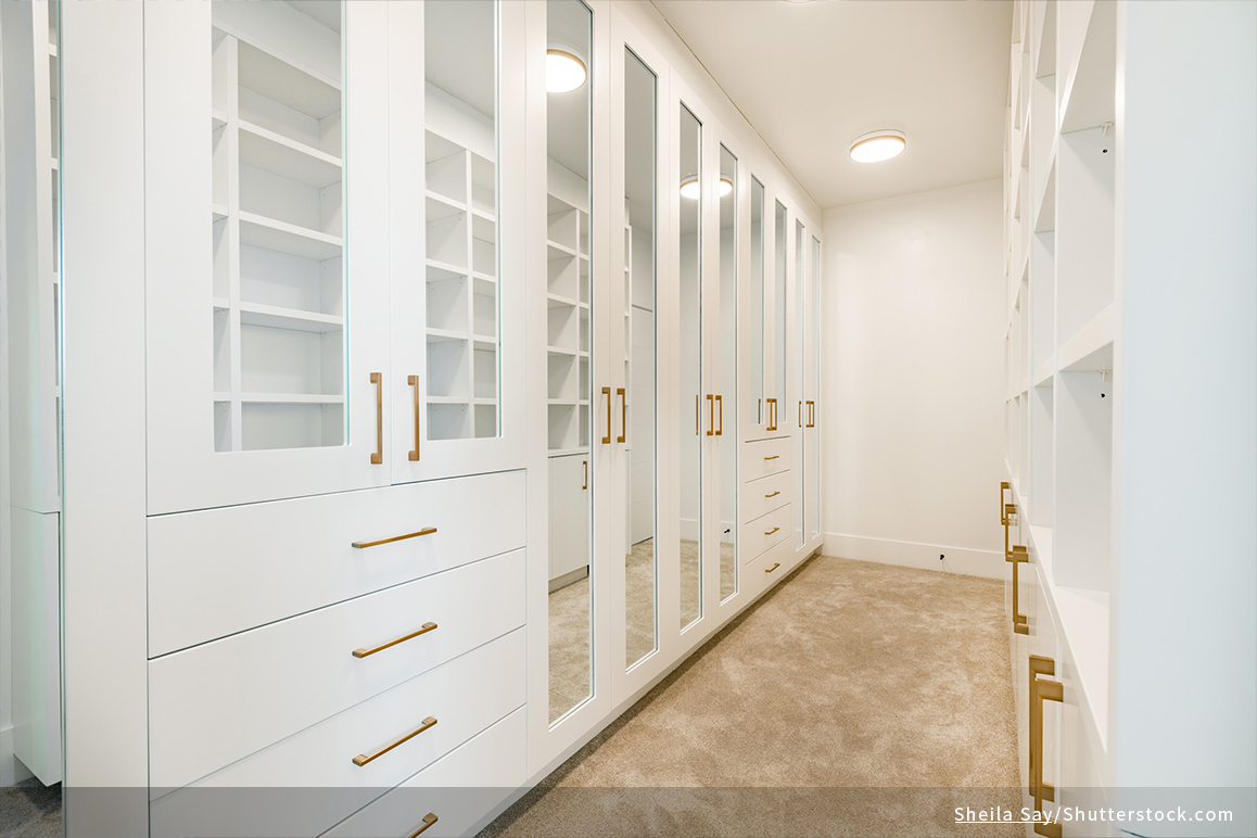 想規劃好用的更衣室,少不了要配置一面全身鏡,裝潢時記得注意鏡子的擺放位置,並計算好適合的照鏡子距離,設計合適的照明,才能不用彎腰或墊腳,輕鬆地看到自己全身的搭配。足夠收納衣物空間