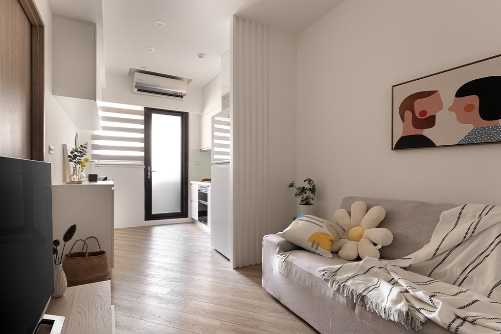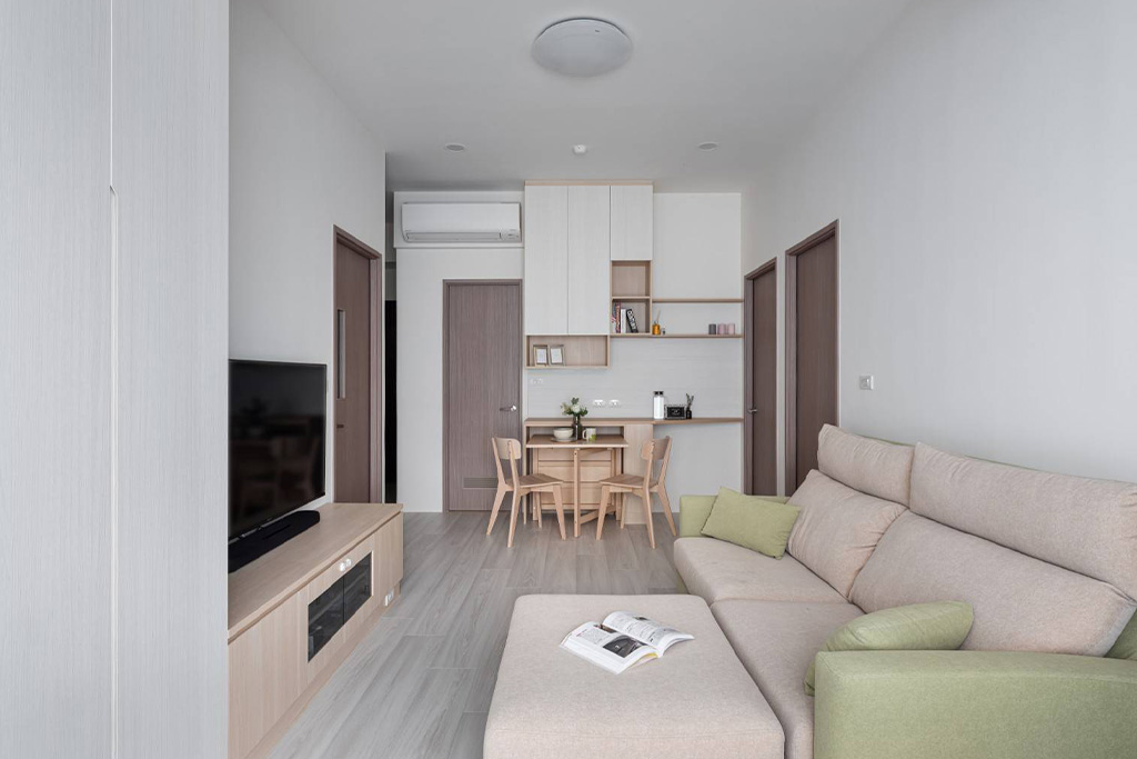 室內設計師將白色、木紋以及布織品完美融合,打造出簡約沉穩的無印風,赤腳漫步其中,猶如身處大自然般,被無條件的接納,撫去生活的疲憊。