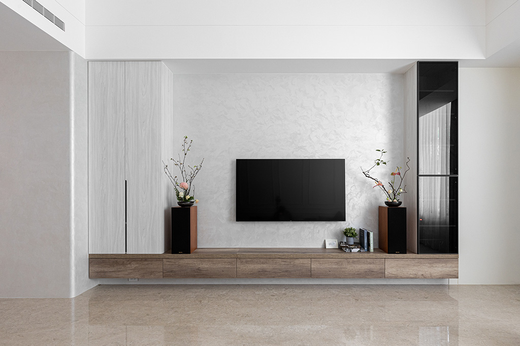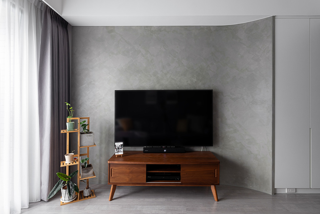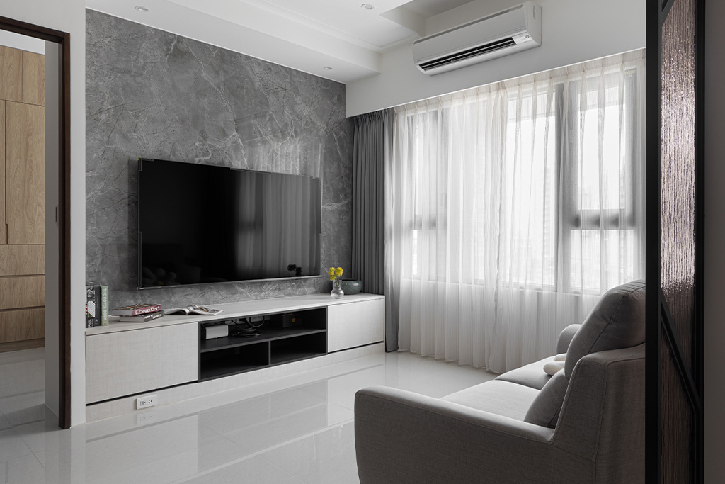 ▲ 灰色石材電視牆展現低調的沉穩大器