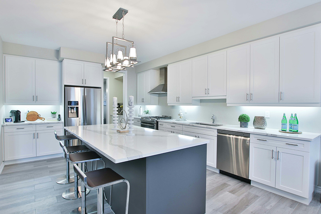 莫蘭迪色系、線板、木紋、寬敞的動線規劃,室內設計師將這些裝修元素合理安排,兼顧了美式風格的清爽通透,以及莫蘭迪色系的氣質,打造出屋主面對生活的優雅格調。