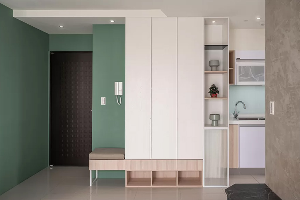 ▲ 玄關灰綠漆跳色讓人眼睛一亮