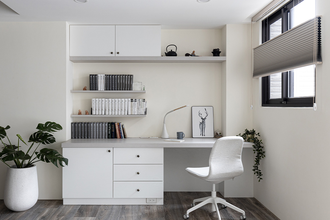 ▲ 沉穩的冷色調書房,適合集中精神讀書與辦公