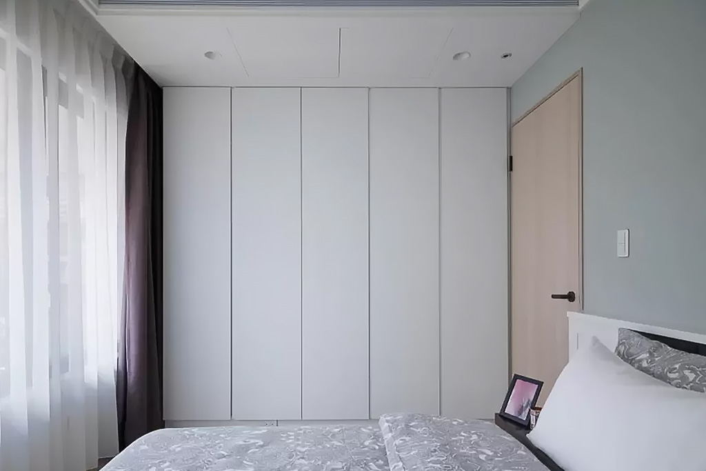 ▲ 莫蘭迪色系的牆面與灰白色衣櫃,優雅大方