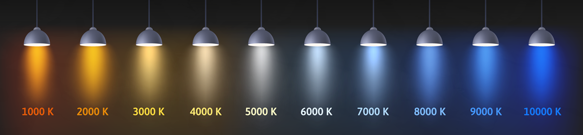 若沒有光,人就不能透過眼睛看到景色,而光本身也帶有色彩,稱之為色溫,在不同的色溫之下,空間的氛圍也會隨之轉換,因此在做裝潢配色時也應將光線規劃納入考量。色溫的單位由英國科學家克耳文制定,因此稱為Kelvin,簡寫為K,而日常的自然光色溫大約為4000K,屬於暖白光,以此為基準來判斷,數值越高,光的顏色越冷;數值越低;光的色調越暖。