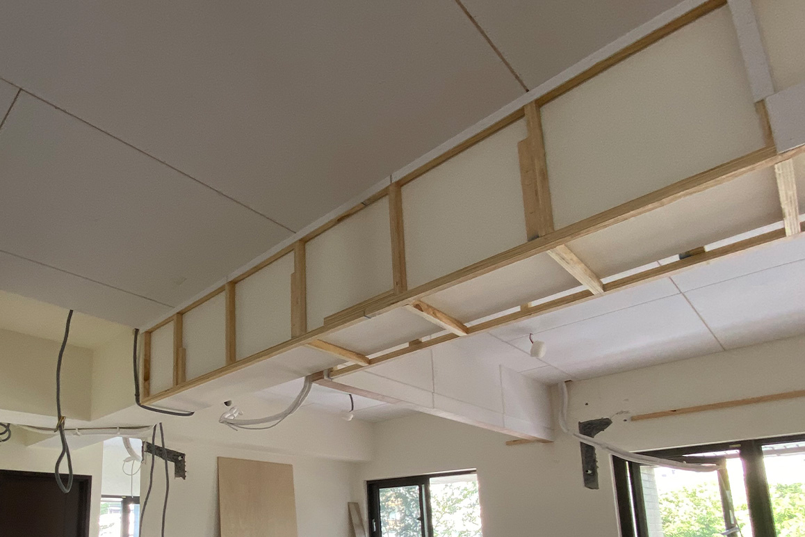 ▲ 包梁天花板施作階段