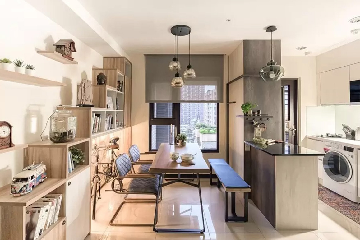 12坪的小宅中,設計師利用系統櫃多元的變化性結合走道動線,在公領域創造了輕食吧台與階梯式的展示收納櫃,讓屋主能隨心擺放出國時所帶回的紀念品,下方也恰巧能擺放腳踏車,每寸空間都不浪費。臥室部分則利用局部開放的系統櫃創造收納,透過淺色系減輕小坪數產生的壓迫感,圍塑出溫暖又有質感的居家空間。>>點擊看完整案例介紹