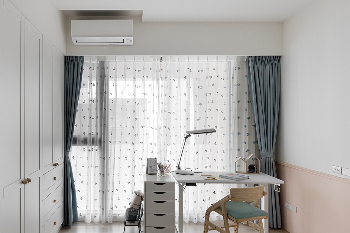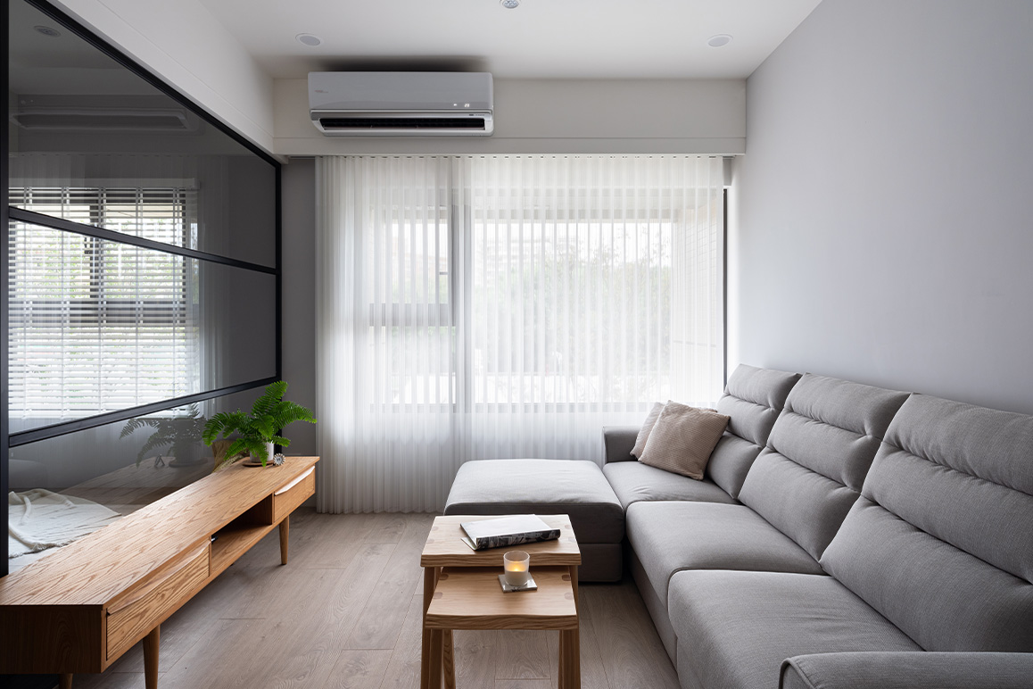 冷氣室內機安裝時,常有一項空間盲區,把冷氣當作一般家電看待,因此空間保留得太過「準確」,只留了與冷氣機尺寸相同的位置,使室內機上下左右都呈現密合貼齊的狀態,這樣的裝修視覺效果看似整齊,卻影響了冷氣發揮功能性。室內機的作用是吹出冷風,讓室內擁有均衡舒適的溫度,而空氣對流需要一定的空間才會順暢,所以安裝室內機時,上下左右應保留至少15公分的距離,不要與裝潢木作和家具貼齊,如此才能確保頂端有空間能夠迴風,出風口也通暢無阻。此外,冷氣室內機的正前方也應保留至少50公分無雜物遮擋,除了出風考量,也是便於往後拆洗保養。