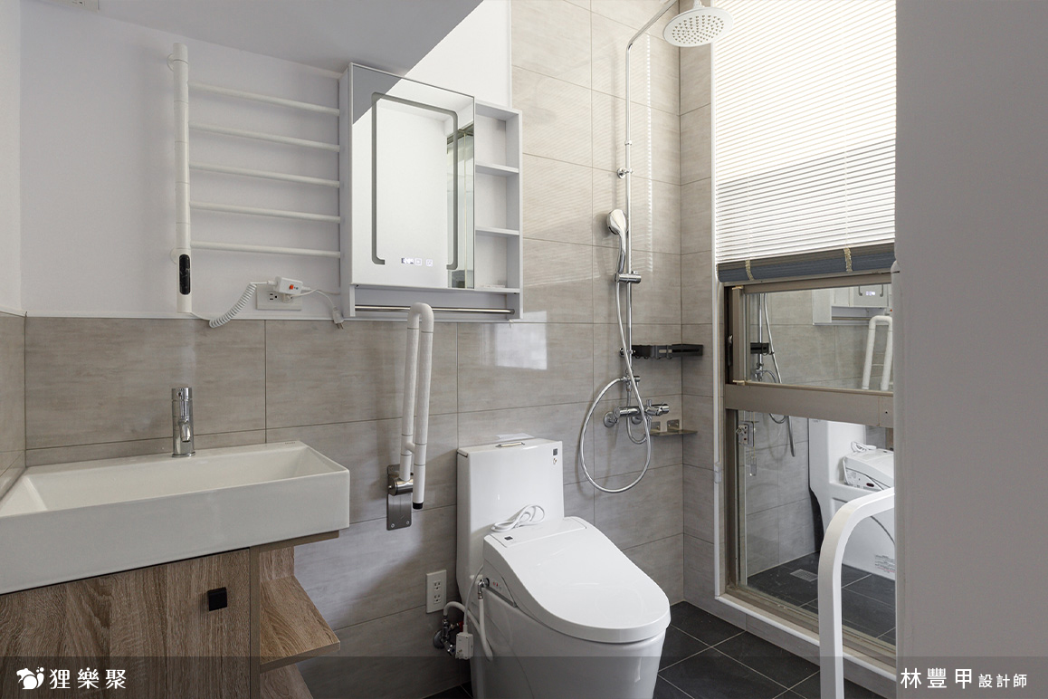 ▲ 衛浴空間,安裝扶手防止長輩脫力跌倒的危險維持保暖的暖風機