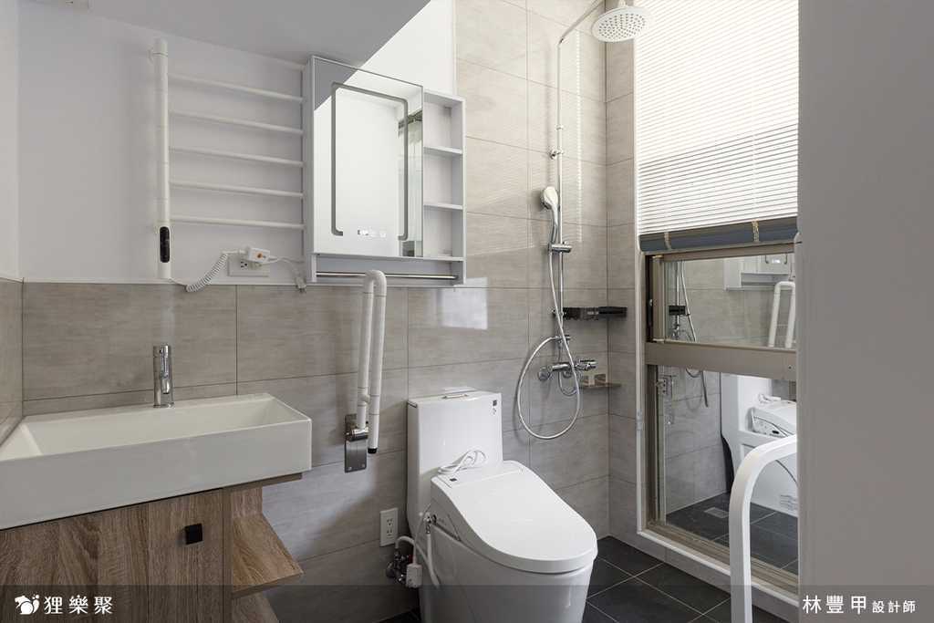 衛浴空間安裝扶手,防止長輩脫力跌倒的危險。圖/狸樂聚提供