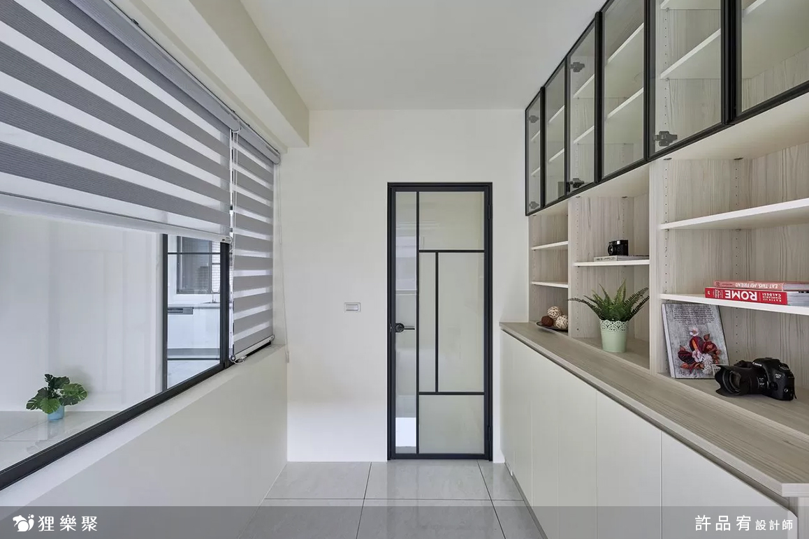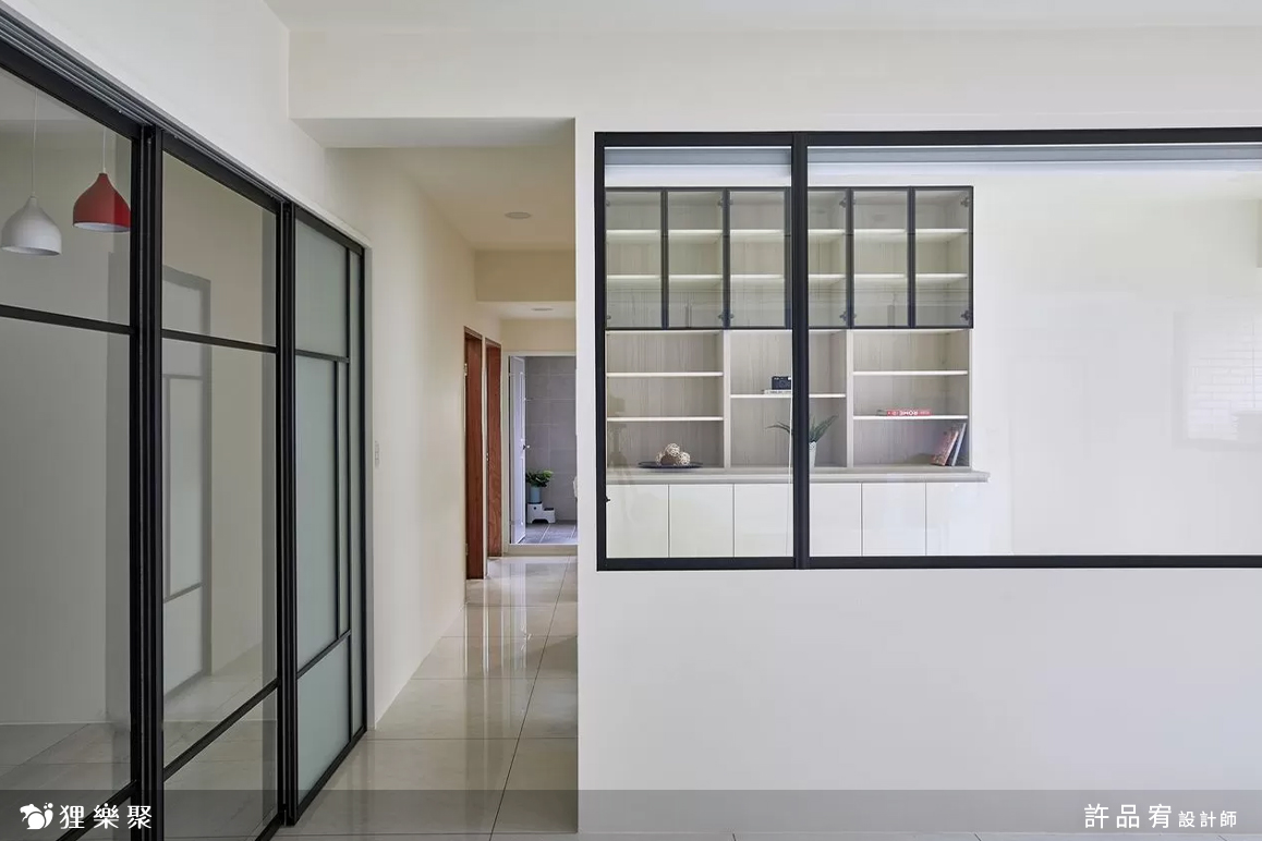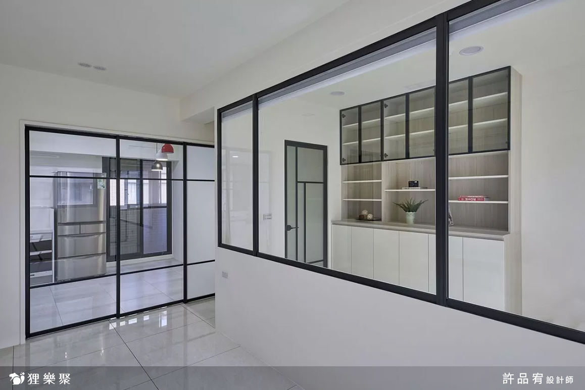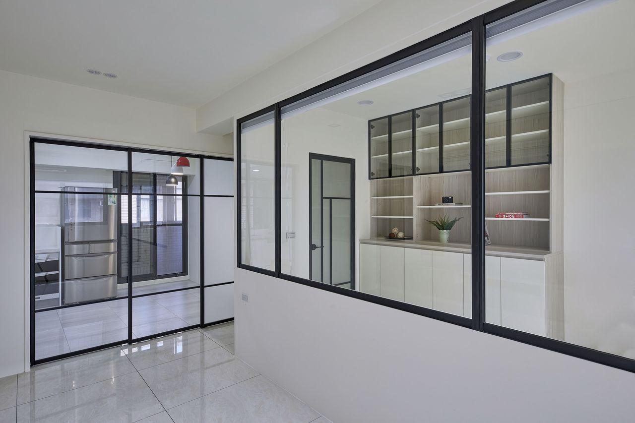 空間中運用大量的玻璃門增加穿透感,在區隔不同場域的同時也避免阻斷空間感,讓這個現代簡約風的小坪數裝潢在視覺上更加開闊。