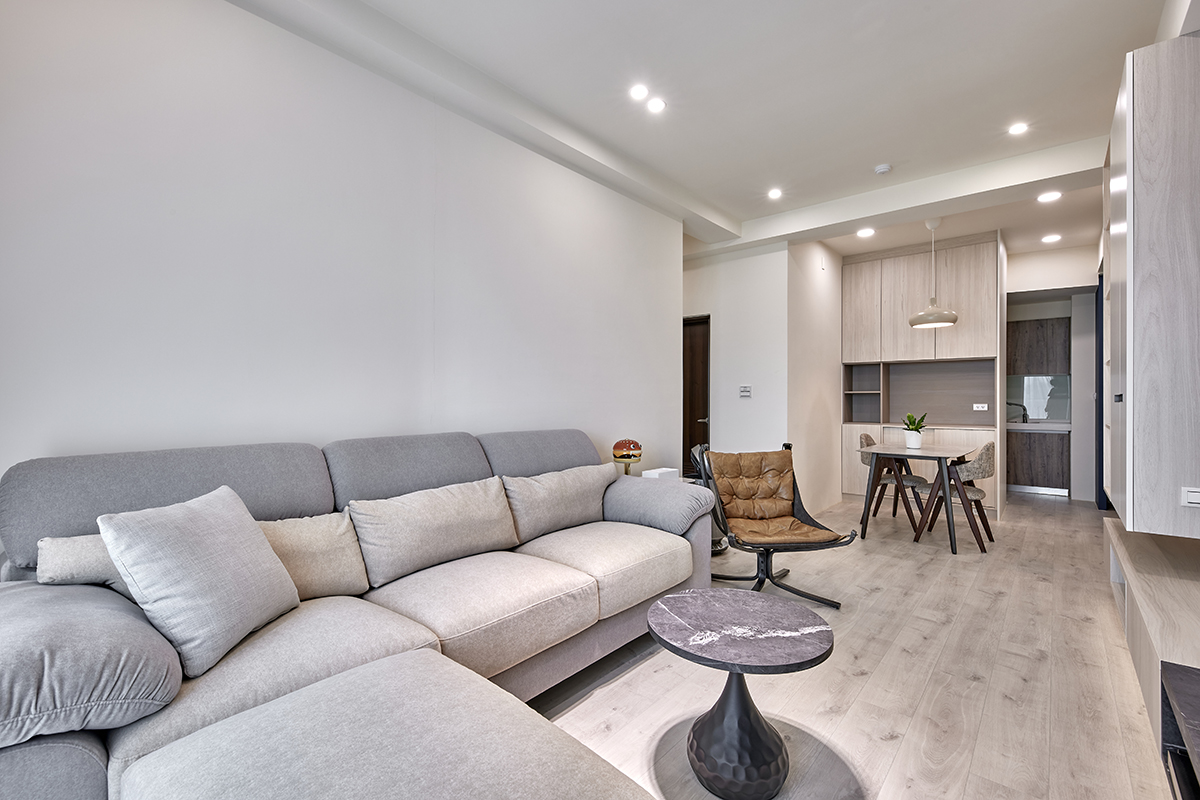 ▲ 櫃體與地板都選用淺木紋,整體空間以淺色調為主