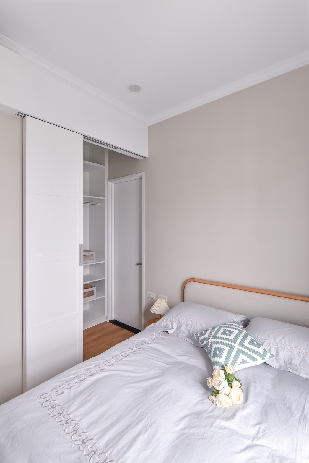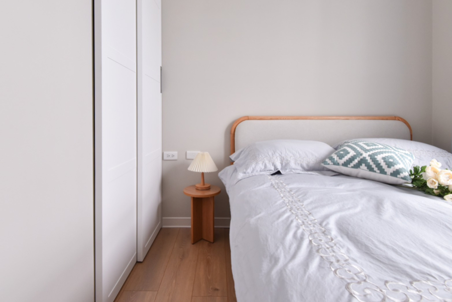 ▲ 主臥溫柔的蛋殼色牆面