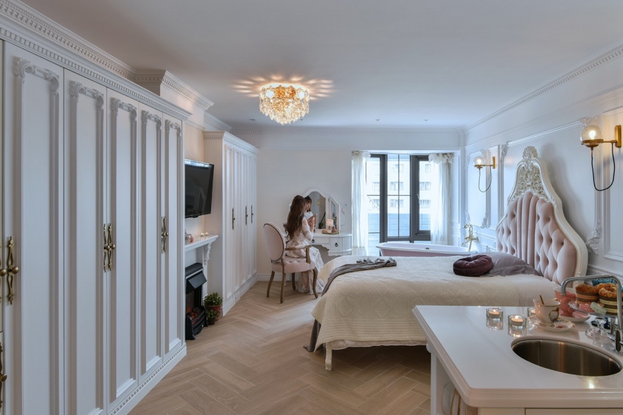屋主是一個獨居女子,浪漫的她有著明確的取向,喜歡華麗中帶著典雅的法式古典風格。本次的案子是舊屋翻修,考量到坪數不大,為