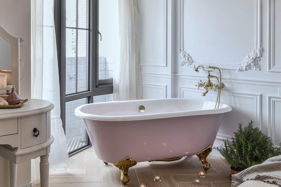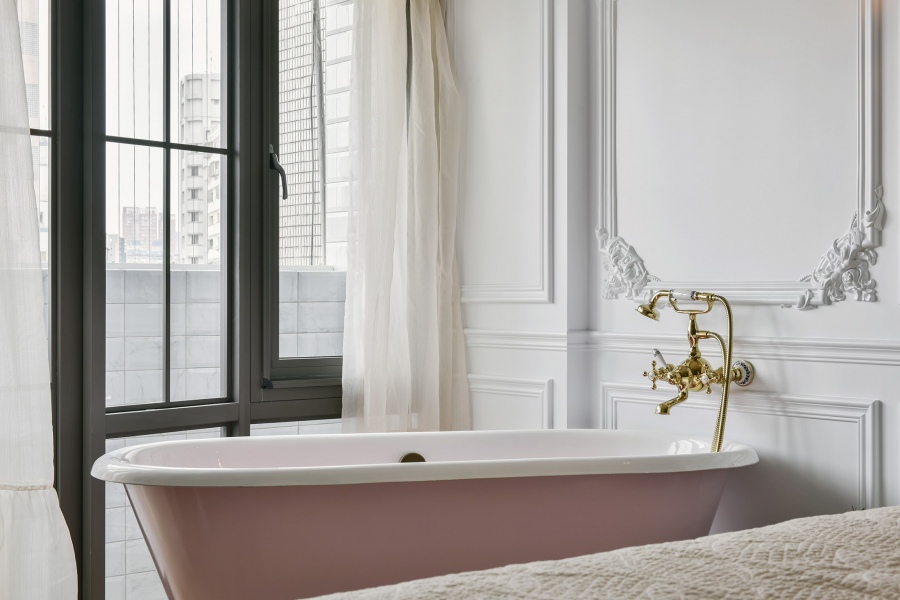 、以及窗邊浴缸的貓腳,從小處著手展現貴氣;最後再融入業主喜愛的淡粉色,帶出個人獨特的風格。