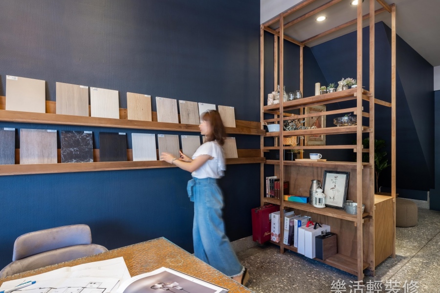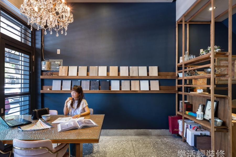 這間位於一樓的店面是一個8坪的空間,主要需規劃展示及洽談的區域,為了能夠用樂活自在的心情辦公,並且展現獨特細膩的空間風
