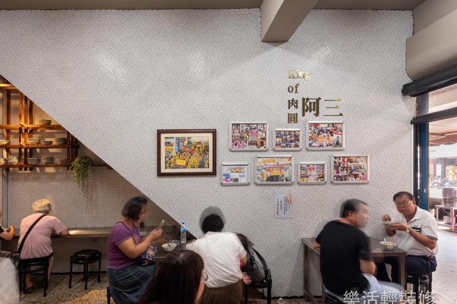 這個案子是彰化排隊美食名店阿三肉圓的用餐區形象改款專案,由於店長相當念舊,希望能夠保留店內的磨石子地板以及鋁窗門面,並且延用原有的不鏽鋼桌及黑塑膠圓椅,維護傳統元素之餘,再加入工業風的元素來改變輕裝,讓人同時感受到古早味的溫暖且又能耳目ㄧ新。