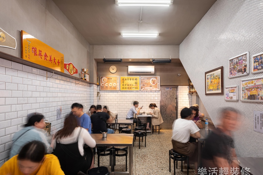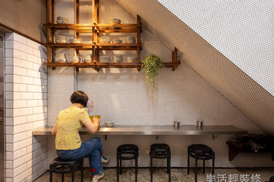 牆面設計的部分大量使用馬賽克,帶來復古的視覺感受,與磨石子地板共同呼應著數十年的老店帶來的溫暖氛圍。