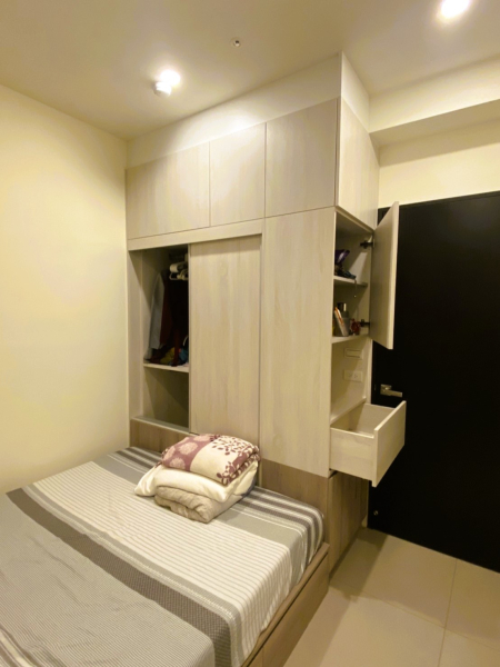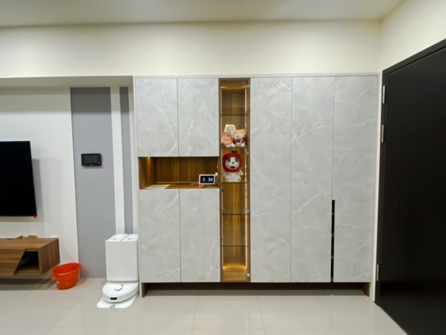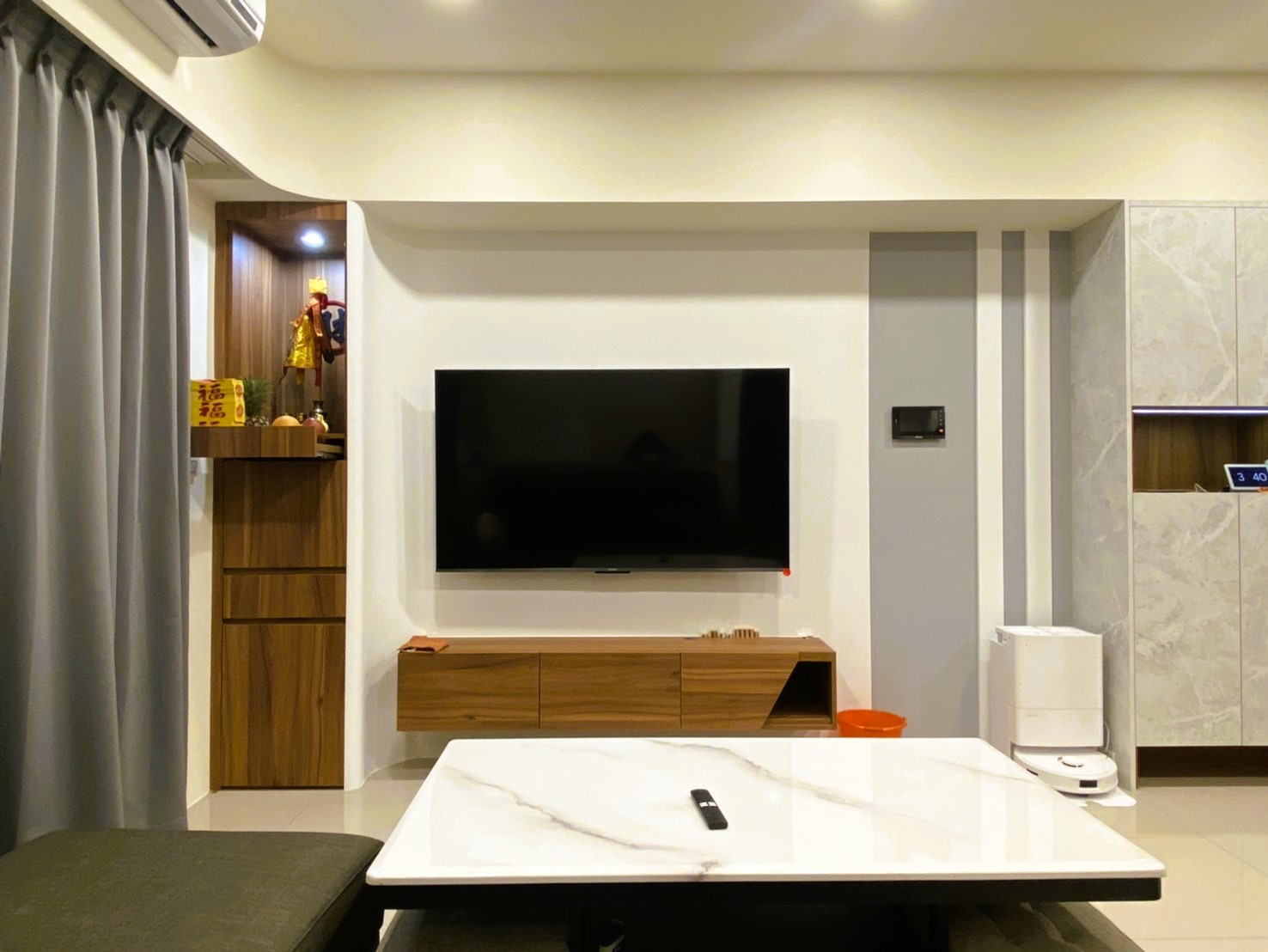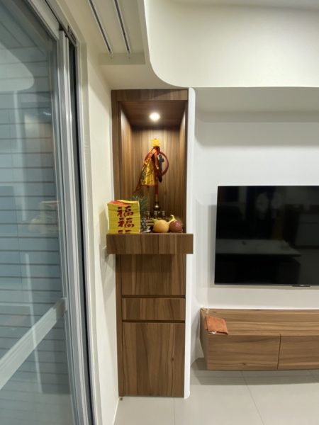 需求:新成屋 風格:現代風,混搭風 坪數:18坪 格局:兩房一廳 特殊需求:1.需擺放神明,因此在這部分特別訂製尺寸符合客戶需求的櫃體~。