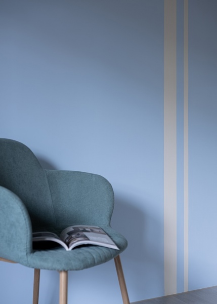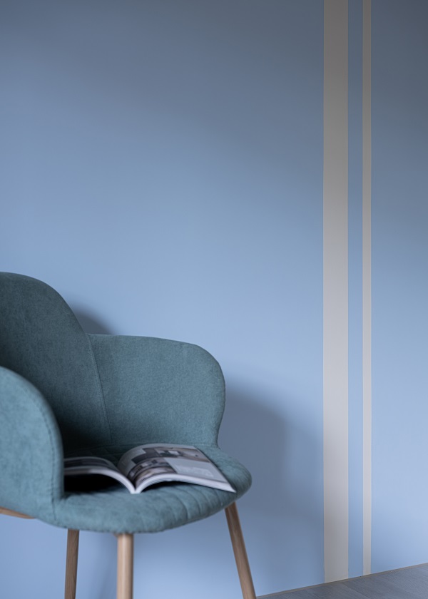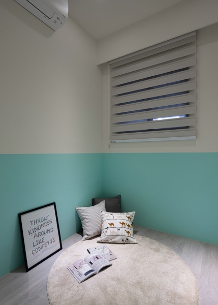 兒童房油漆跳色的形式有許多種,選擇房間主人喜歡的顏色漆在主牆是較常見的做法,也可以如同案例中,利用雙色做線條的變化,或是四面牆分為上下層做跳色裝潢,不同的配色和不同的線條形式都能帶來非常不一樣的感受。▲ 雙色線條牆面設計