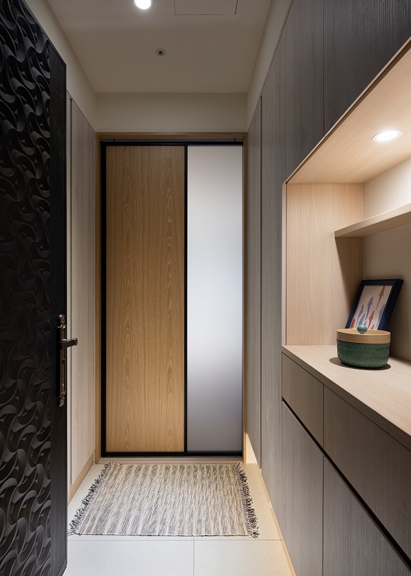 ▲ 玄關淡色系木紋櫃體