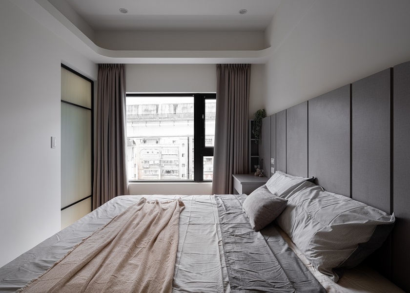推拉門是區隔空間的好幫手,除了可以省下一般門片迴旋的空間外,推拉門的造型也能替屋子增色不少,在玄關和主臥室的更衣間使用了拼接造型的推拉門,隔開了玄關處的灰塵,也讓更衣間盡量保持乾淨。