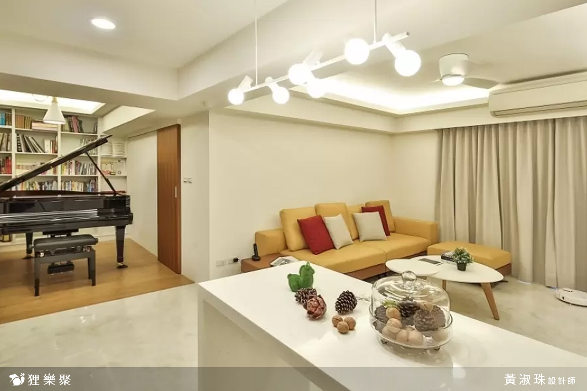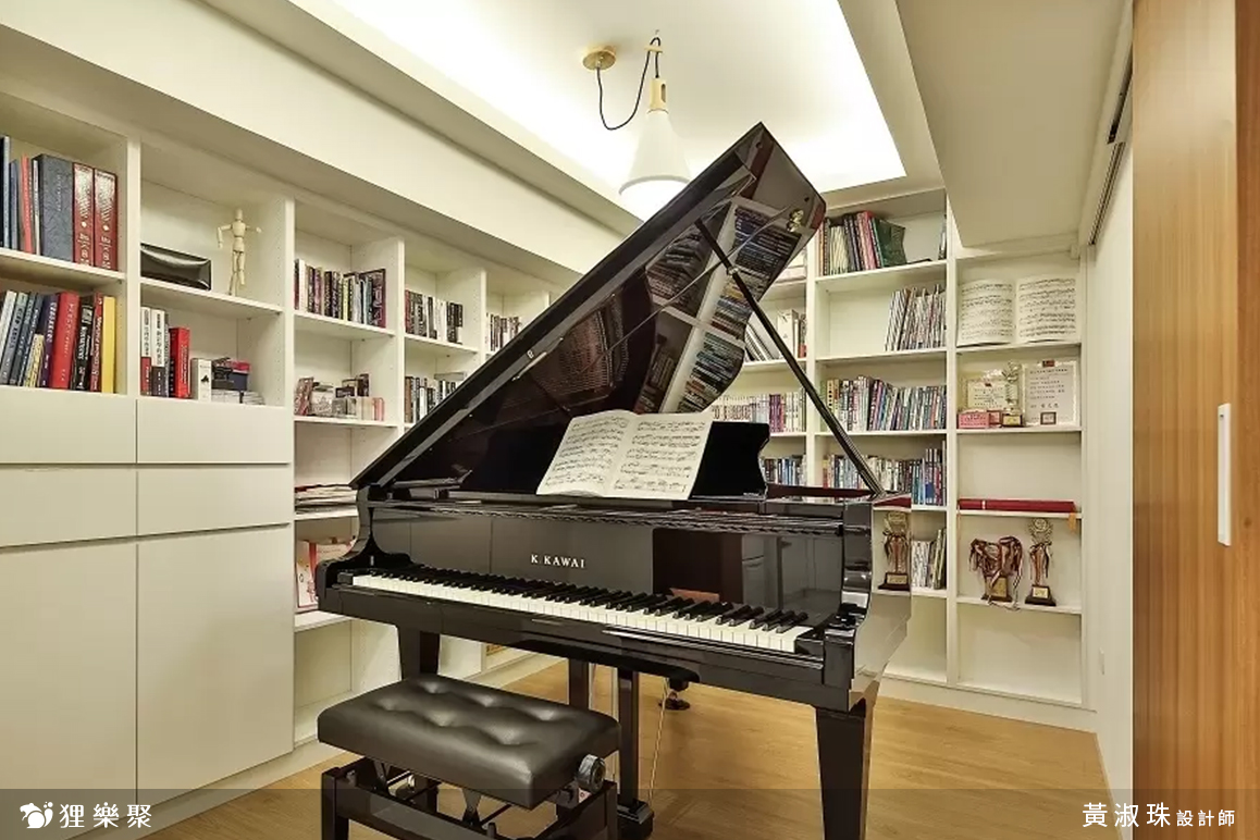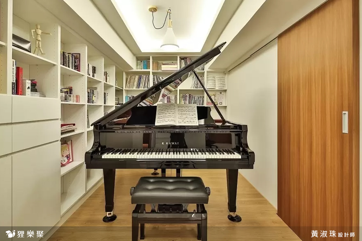 由於屋主使用餐廳的機會不多,一般都是外食或是在客廳食用,一天卻會花不少時間在琴房,於是將原來餐廳區域規劃為琴房。畢竟屋內的坪數不算太大,鋼琴本身的體積也不小,為了避免在琴房內會有壓迫感,將其設計為開放式,來增加空間的通透感。延伸閱讀:<< 裝潢設計費用又爆了?學會預算分配變身成裝修精算師 >>