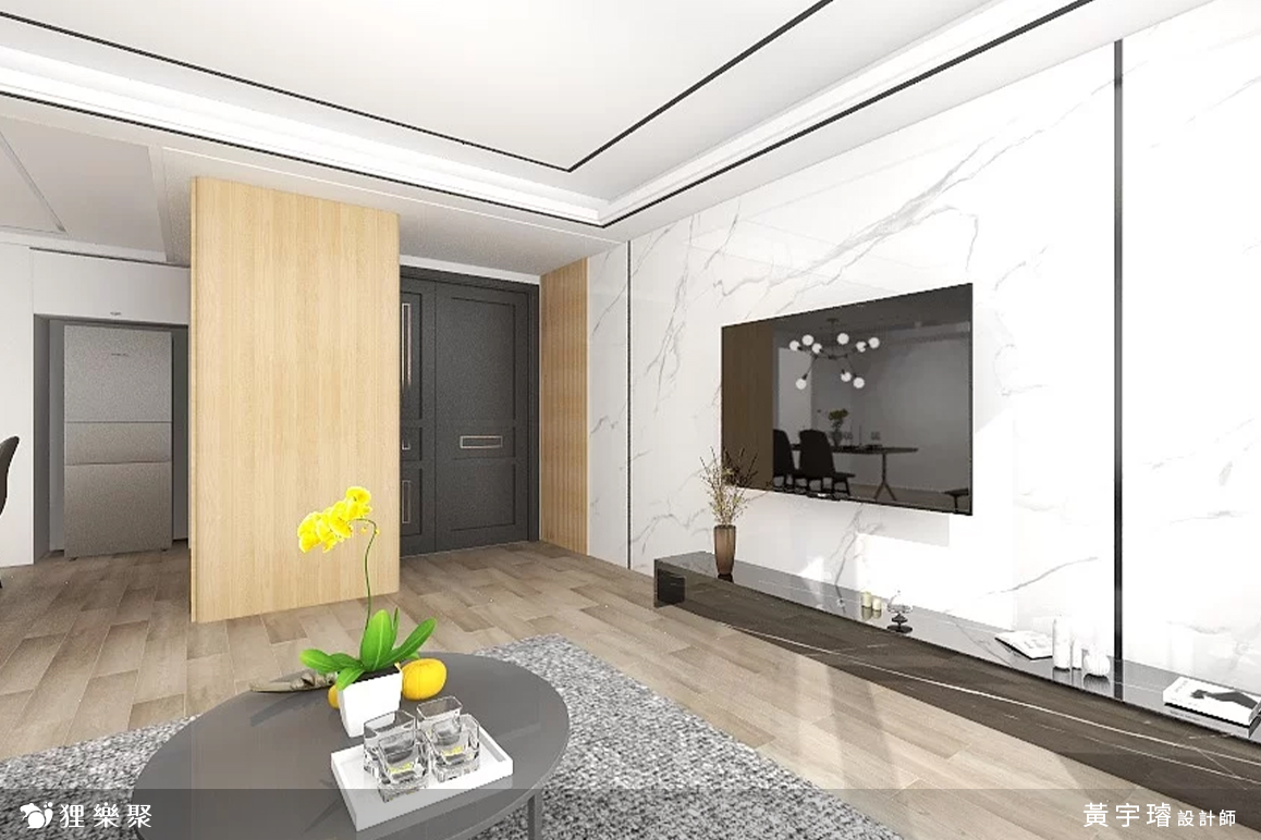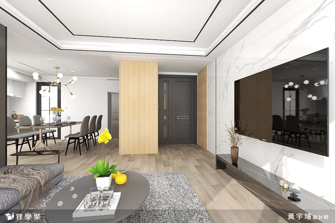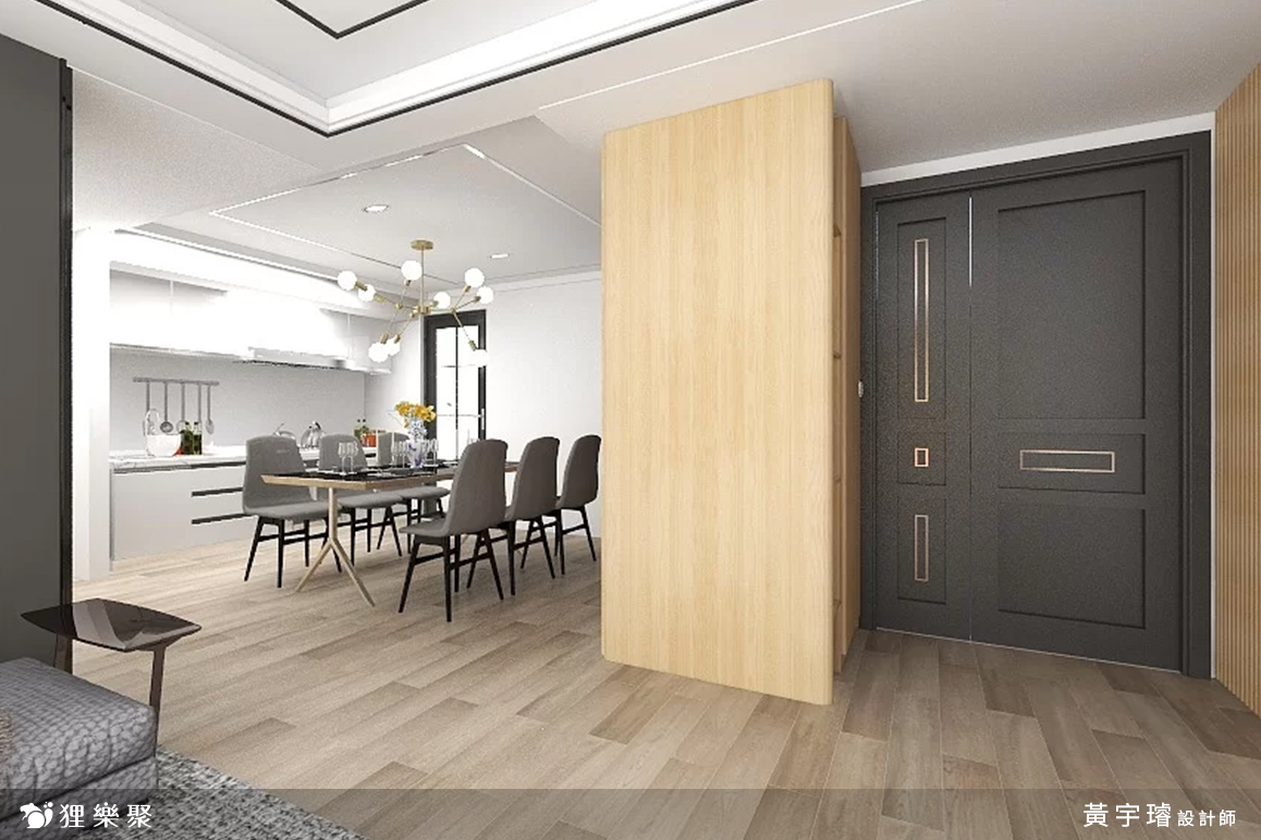 由於屋主希望回到家打開門的瞬間能有溫暖的感覺,所以玄關處以淺色的木質調為主,甚至加入了格柵牆,讓溫暖的設計擁抱下班後疲憊的屋主,雖然色調上和經典的輕奢風配色稍有不同,卻也能增添不少居家的生活感。延伸閱讀:<< 裝潢該找統包或室內設計師?先看看差異再選擇! >>