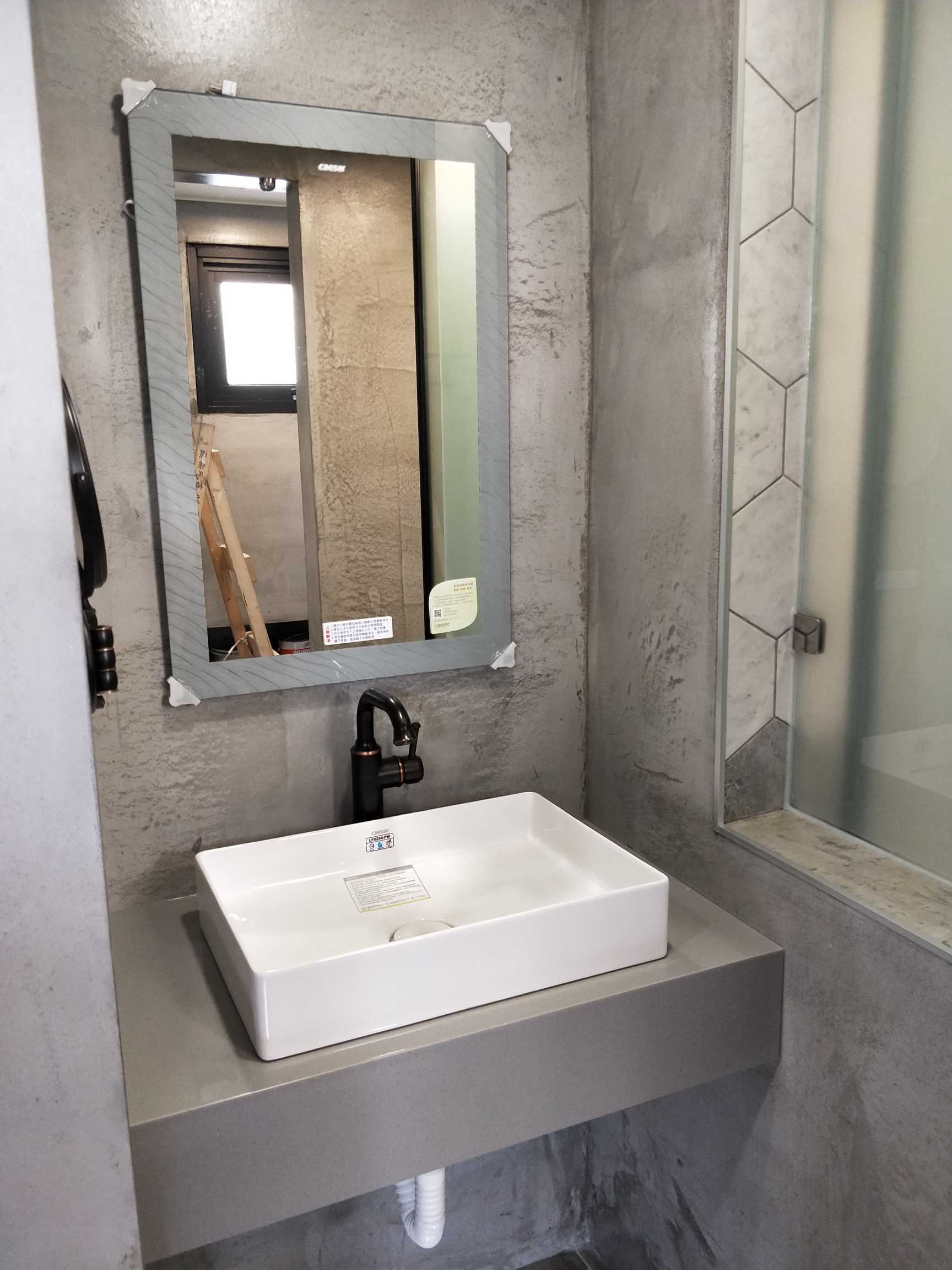 ▲ 從天花牆面到地板大量運用水泥元素浴室翻新設計