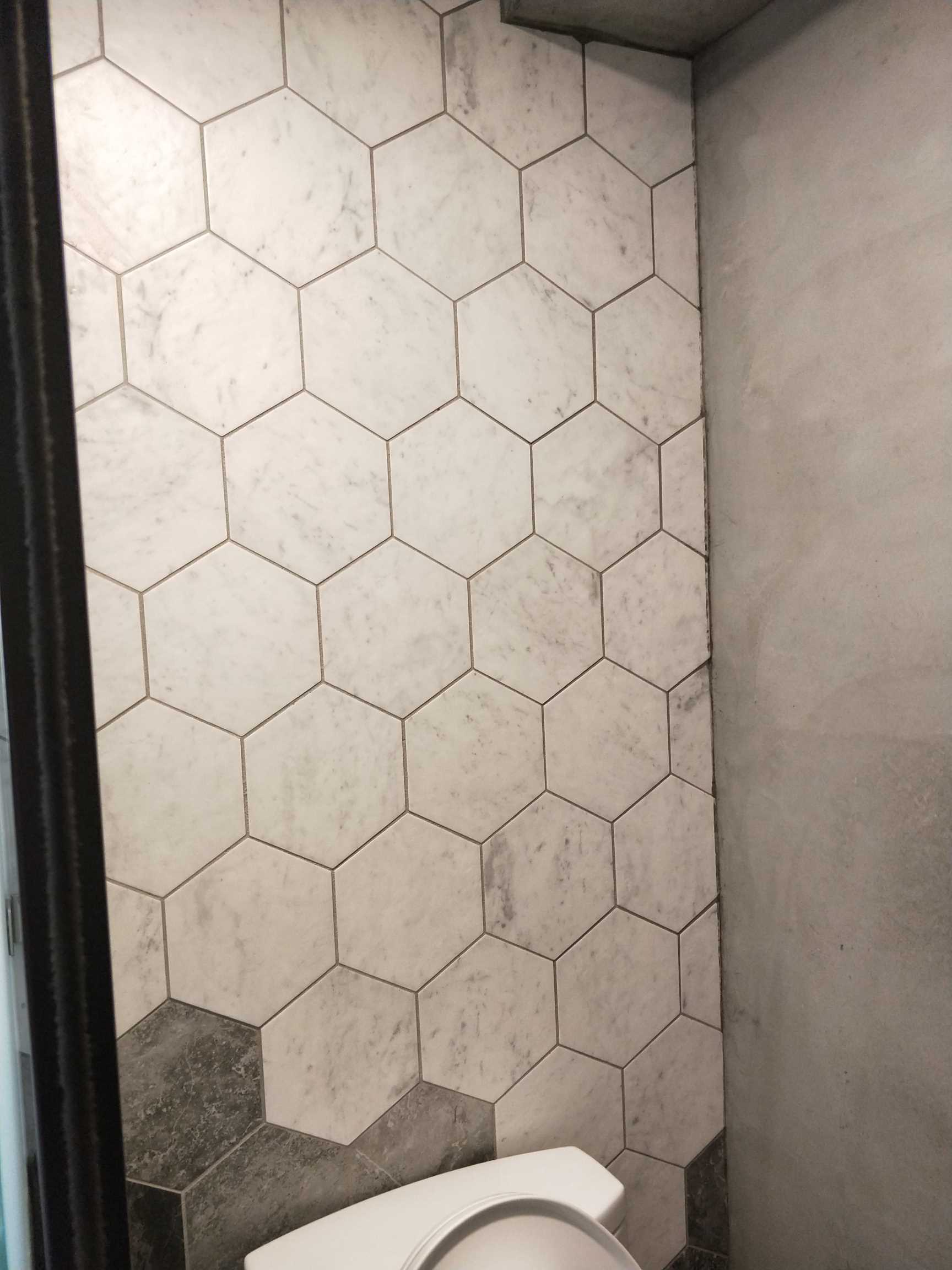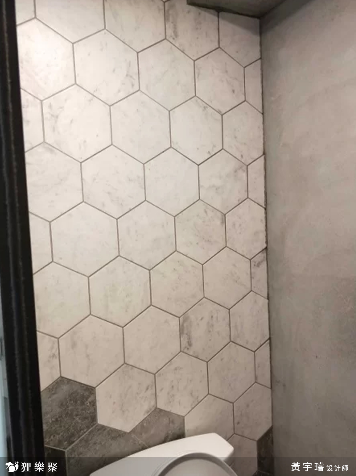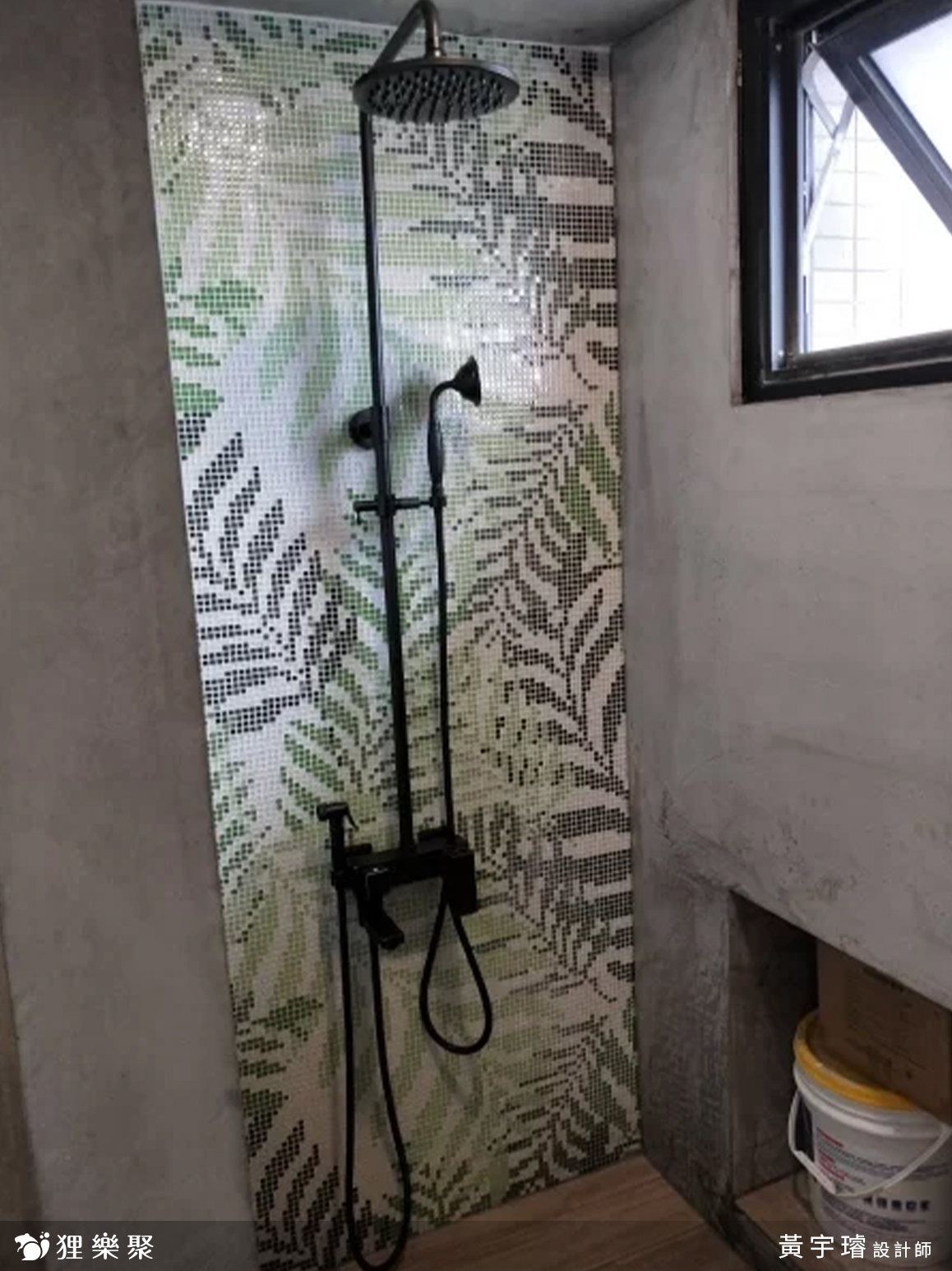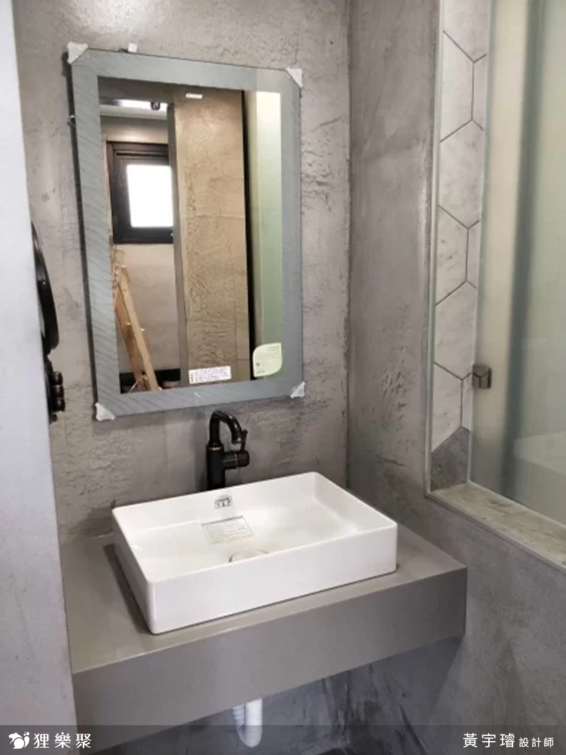 設計師在浴室翻新的設計上也毫不馬虎,延續了公共空間的水泥質感,浴室的壁面以水泥搭配局部磁磚,淋浴區則選擇了木紋磚,是現代工業風裝潢的常見配色。延伸閱讀:<< 裝潢該找統包或室內設計師?先看看差異再選擇! >>