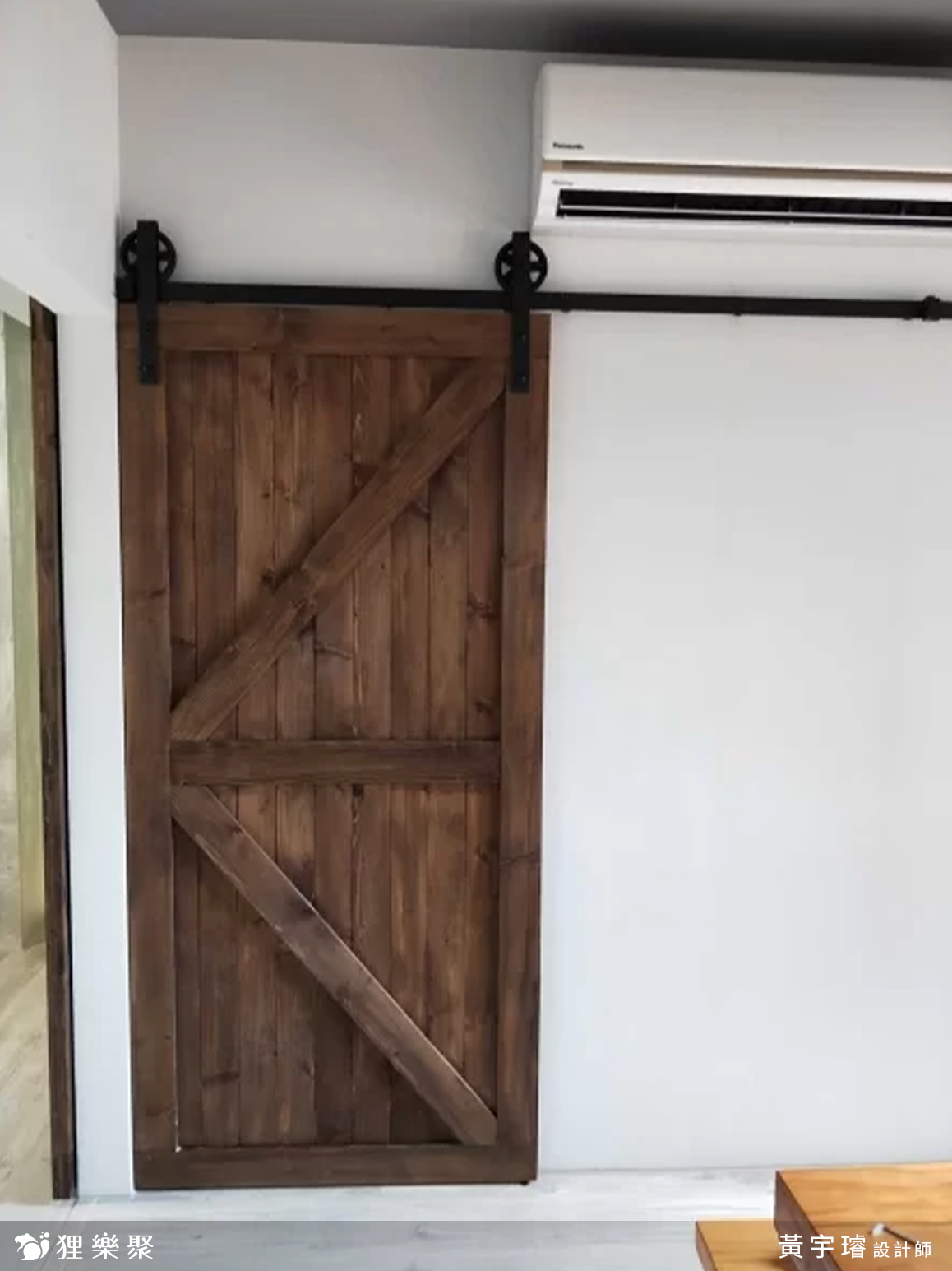 穀倉門也是經典的工業風特色,將主臥一般的隔間門拆掉,換上濃濃仿舊感的穀倉拉門,是一個相當完整的現代工業風舊屋翻新宅。