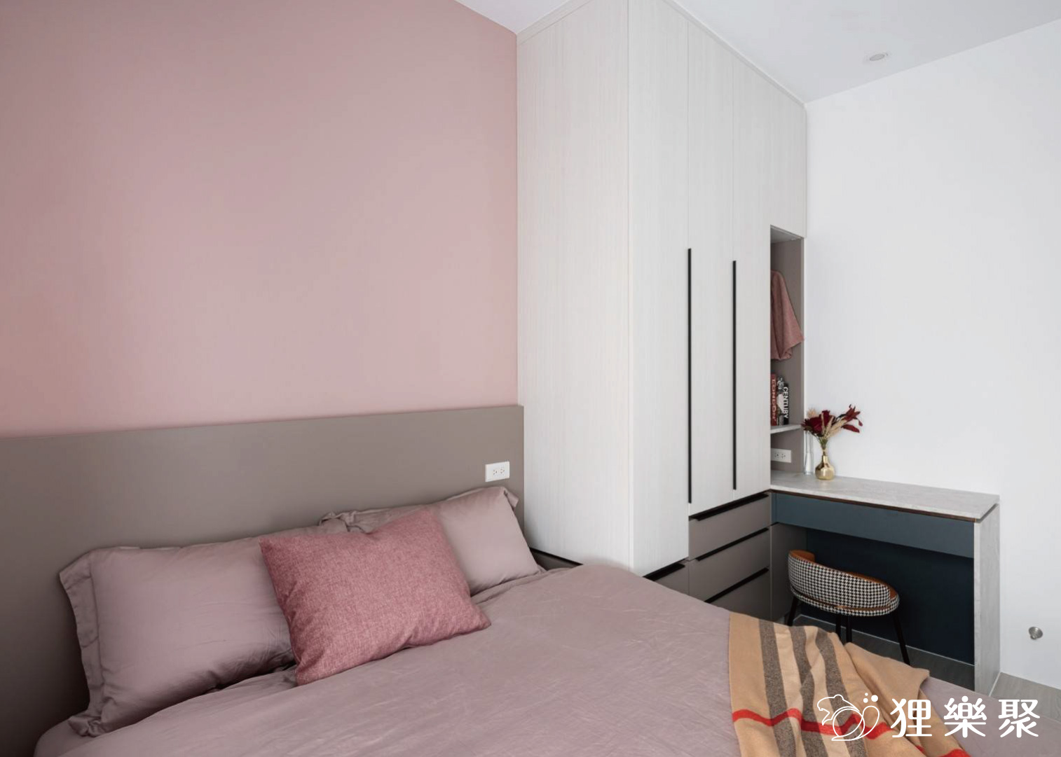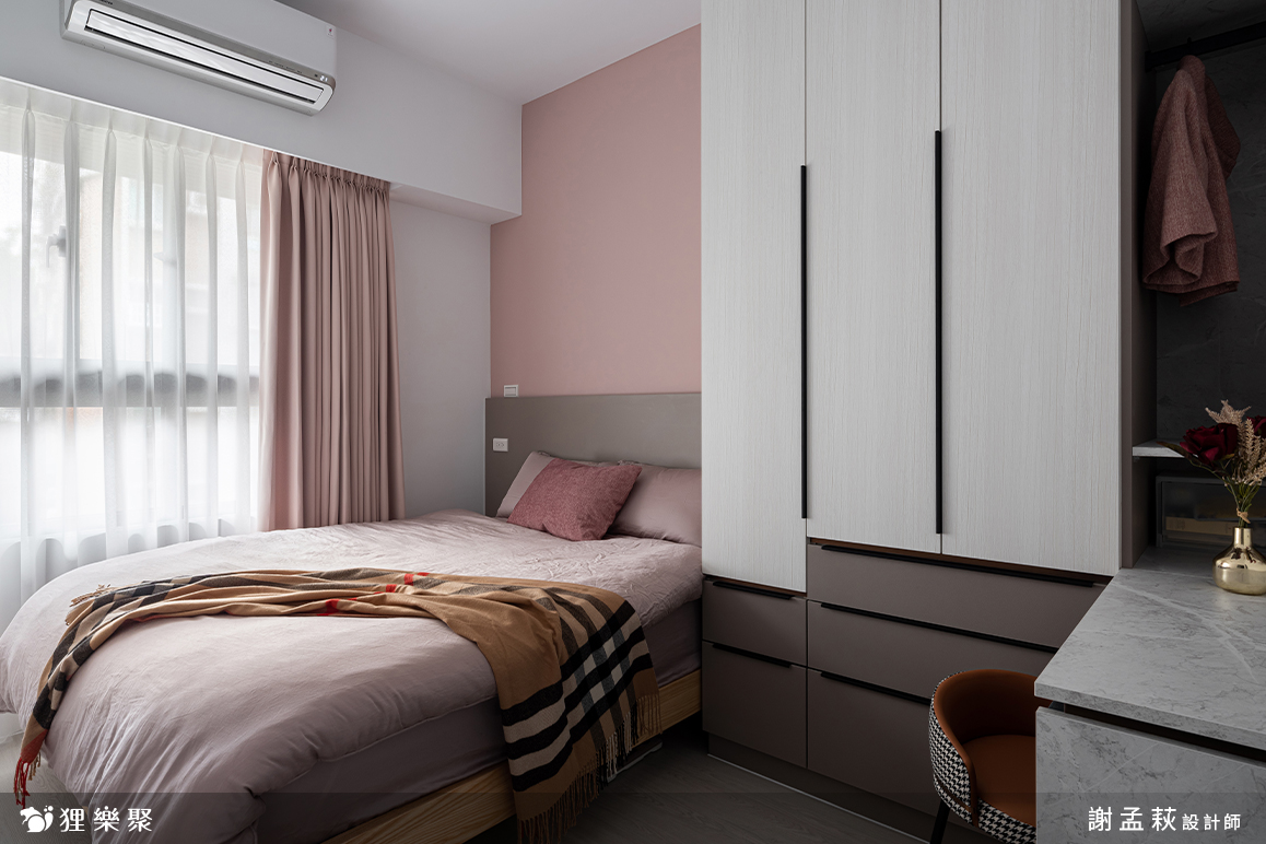▲ 主臥設計帶有灰調的粉色