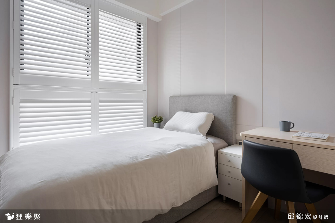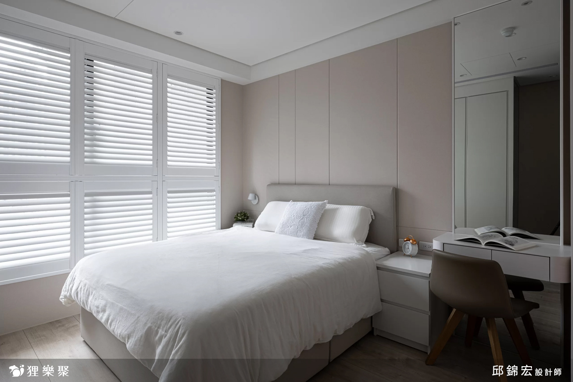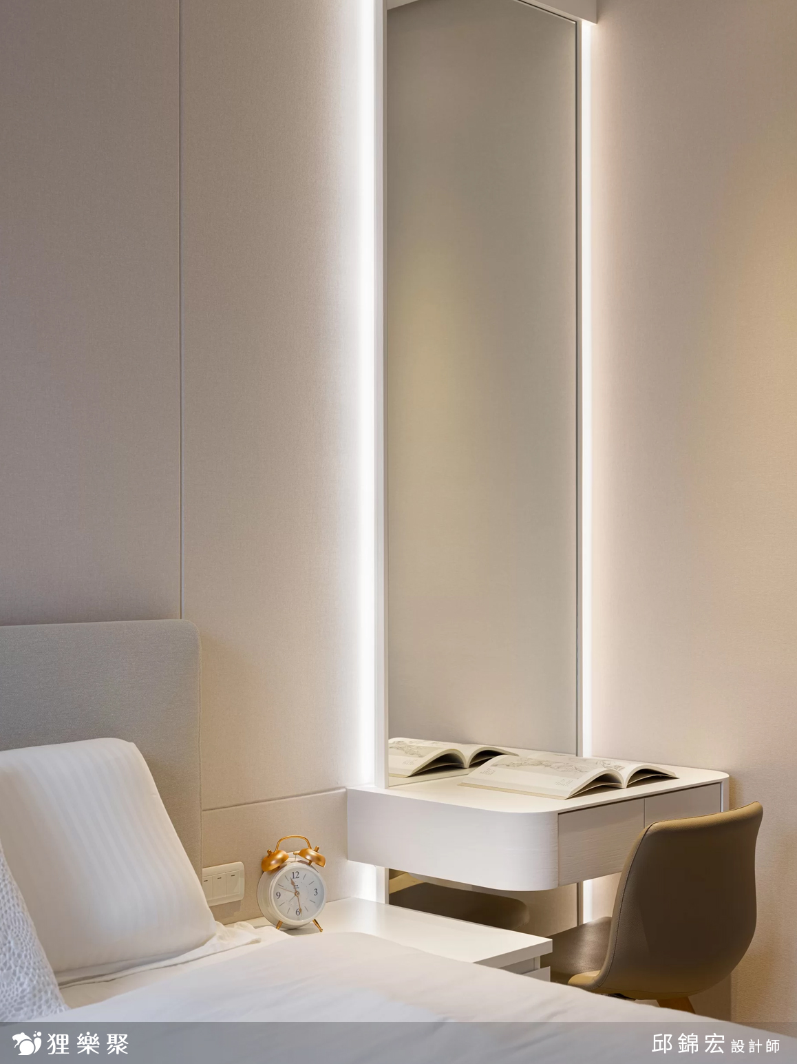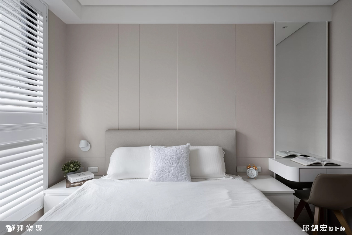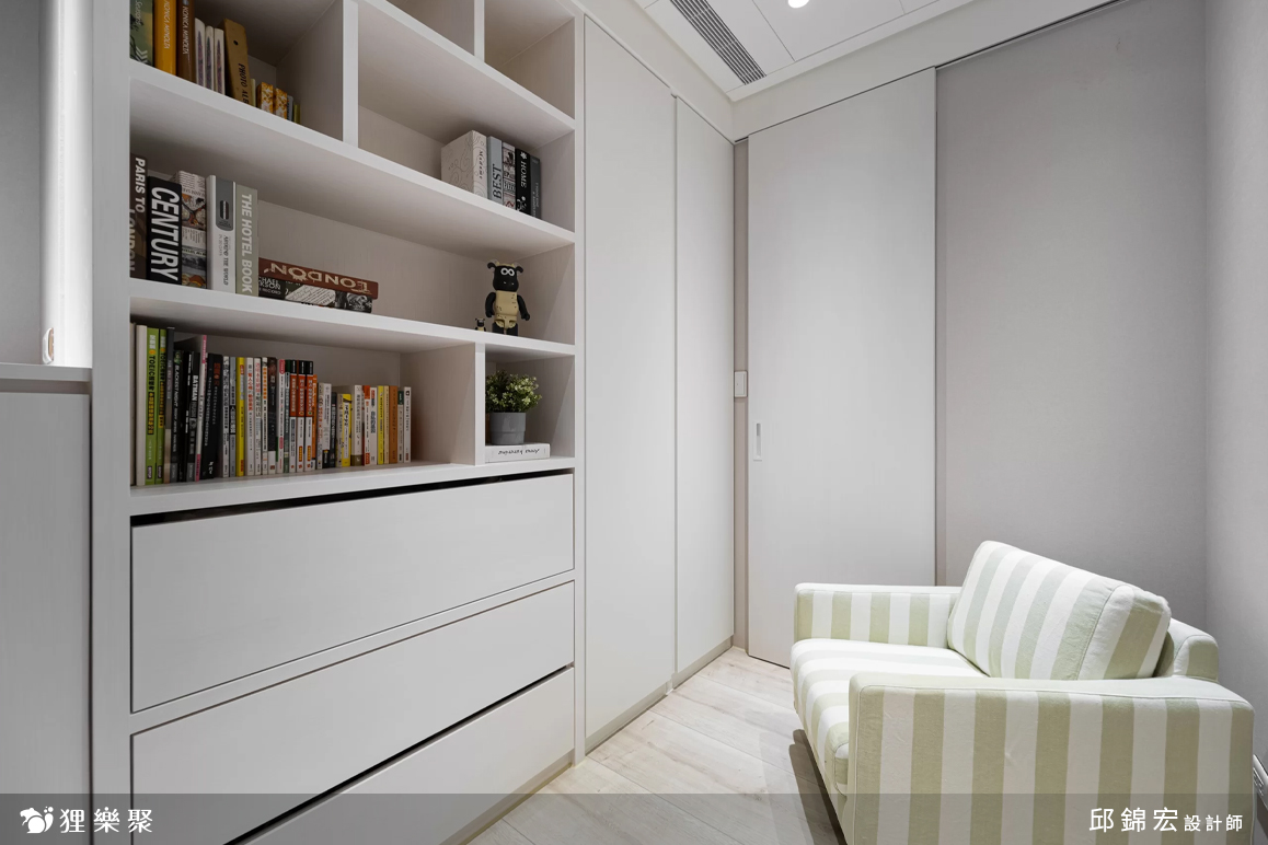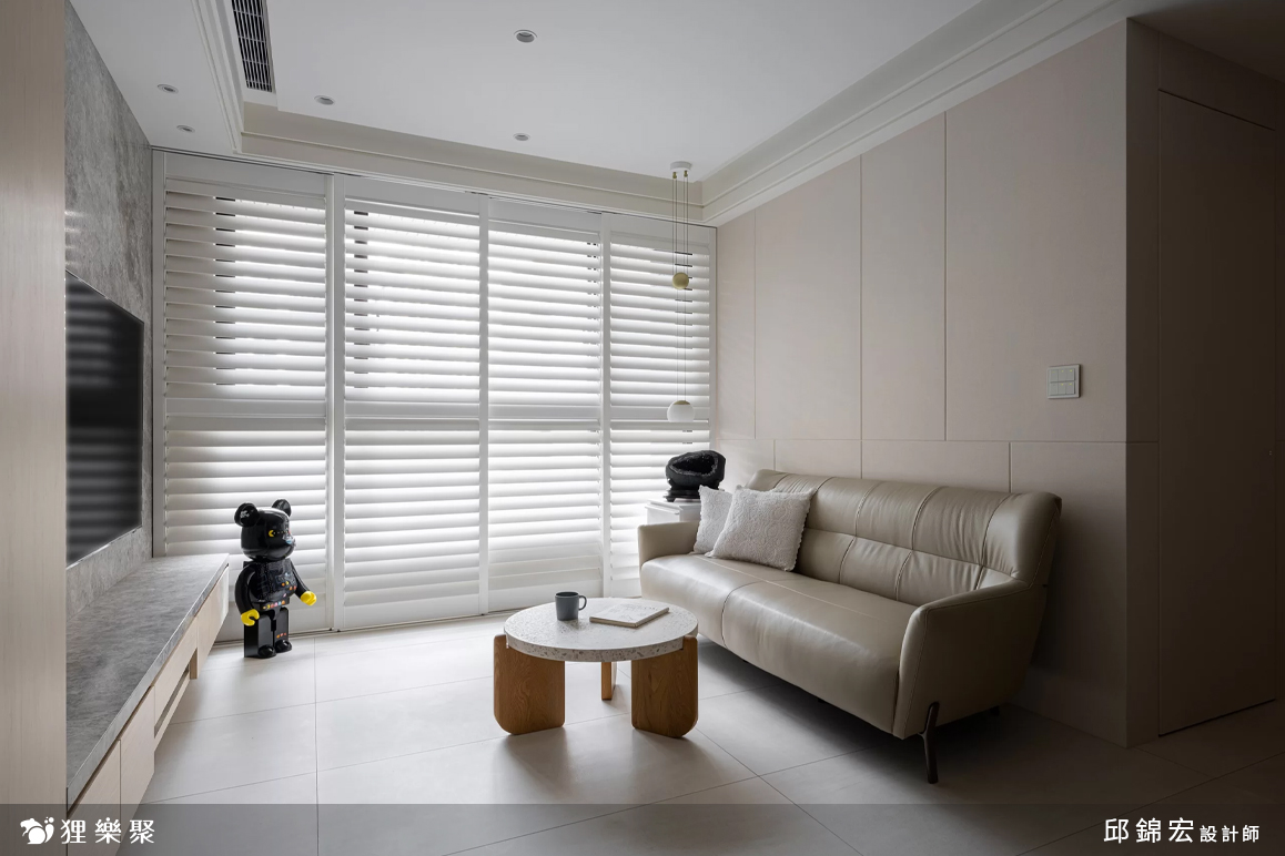 現代簡約風設計常以黑白灰做為基調,用以打造極簡的俐落空間,在現代簡約風定義中,單一色系也可以擴大視覺感受,設計師在這個案例中選擇了白色基底,搭配米灰色的裝飾壁板,再輔以局部帶黃調的櫃體,都是清淡柔和的顏色,整體淺淡的色系也讓空間放大了不少。延伸閱讀:<< 小宅放大術裝潢秘笈,放大你的家! >>