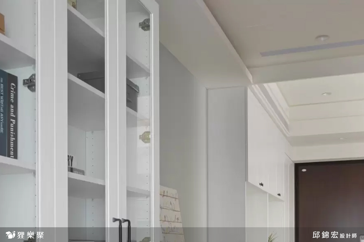 美式風格常使用線板的元素,例如在玄關櫃和餐邊櫃的門片使用線板造型,輕美式風格立刻呼之欲出,另外用簡約的線條做天花板的造型,再搭配上天花板嵌燈,讓小空間在視覺上不會顯得過於繁雜,卻也成功地營造出輕美式的風味。