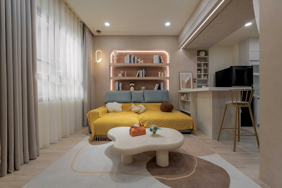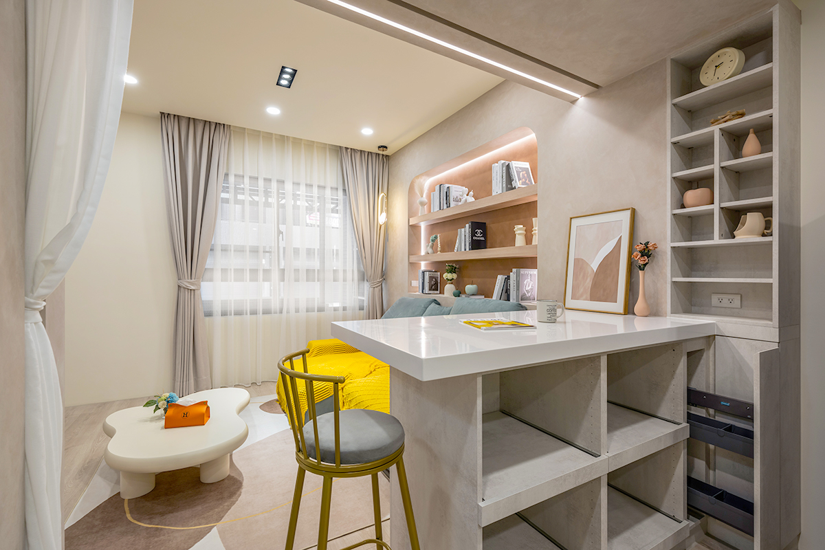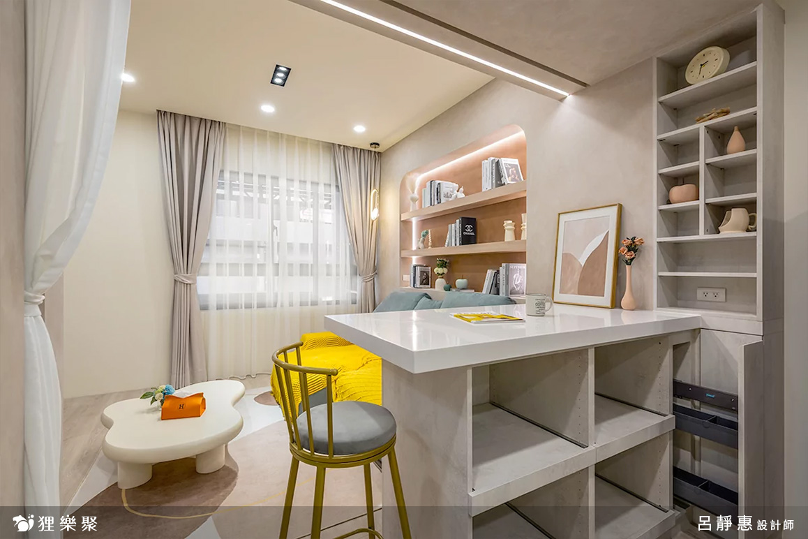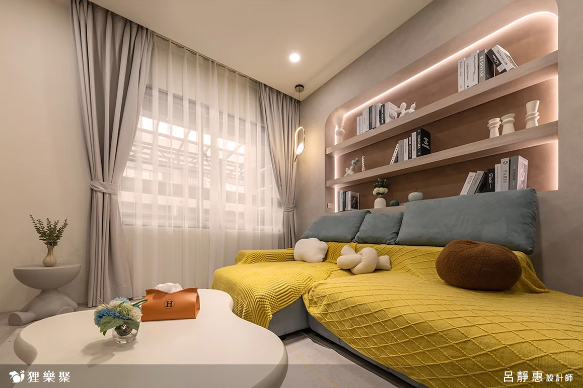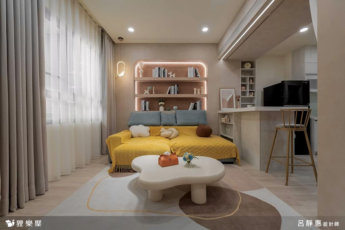 ▲ 善用各處空間,沙發後方設置開放式弧形櫃體
