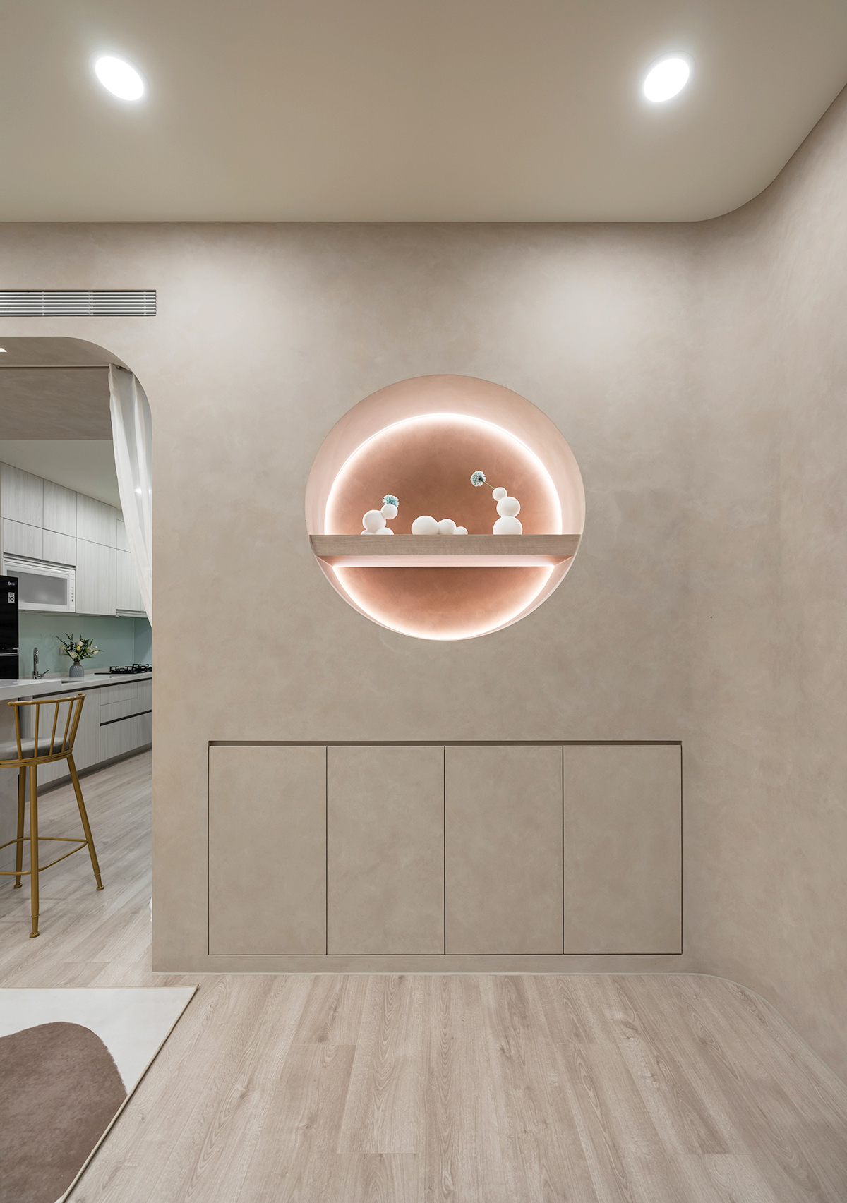 ▲ 柔和燈光、弧面造型設計,低調獨特的居家質感