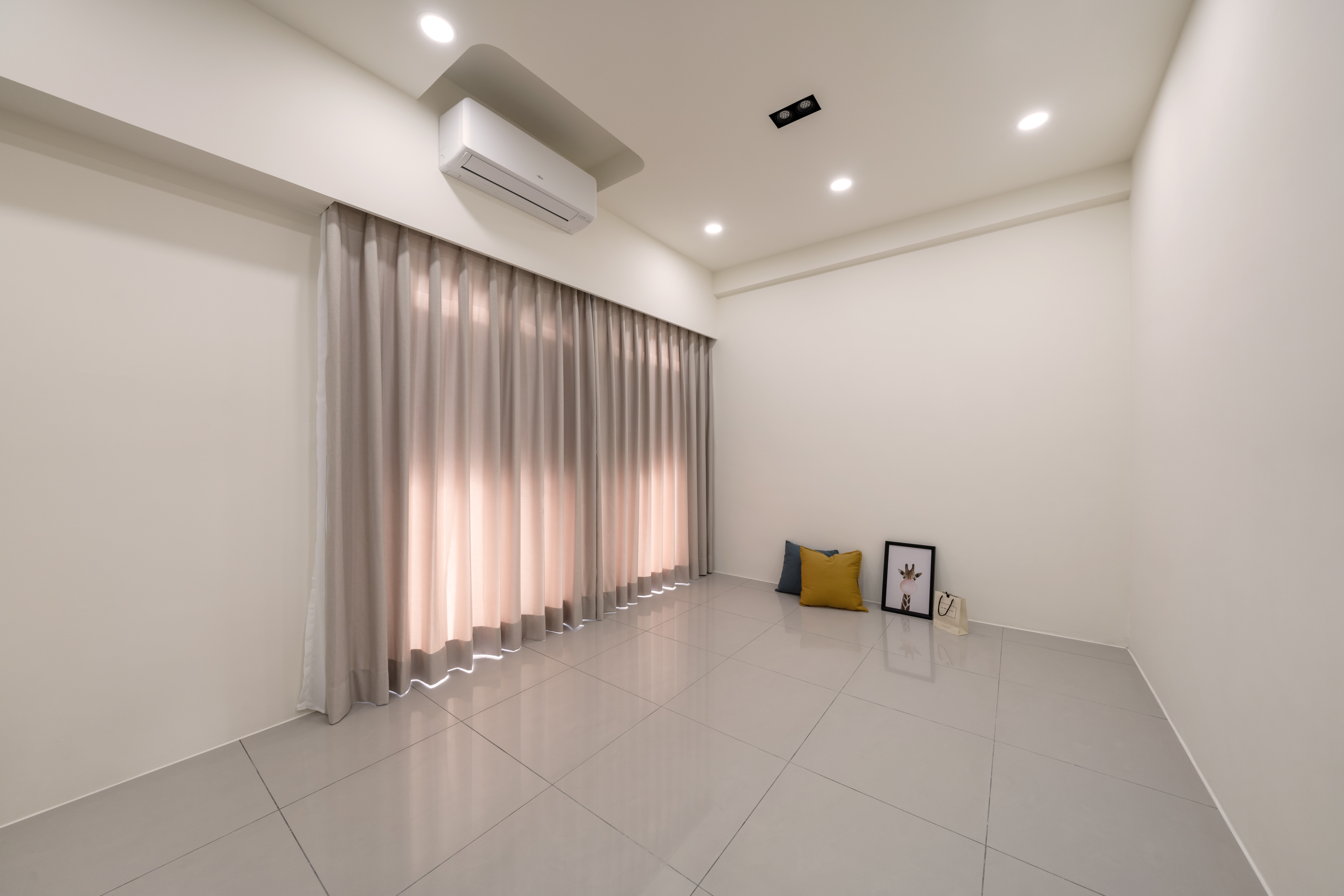 ▲ 主臥室用魚骨拼地板與燈帶、軟裝點綴