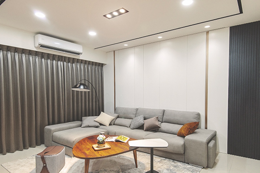 設計師以現代極簡風替業主做規劃,利用黑、白、灰色塊作為空間主調,並搭配流暢消光黑色來勾勒俐落的線條,讓空間感呈現出簡潔時尚的風味,輔以灰階色階家具及軟件搭配,並在局部選擇隱藏門設計,巧妙地為空間做修飾,顯現雍容且不失時尚的氛圍。
