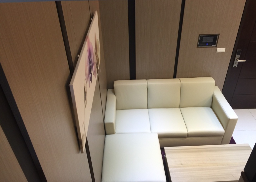 ▲ 木質色塊牆面錯落搭配使空間更富層次