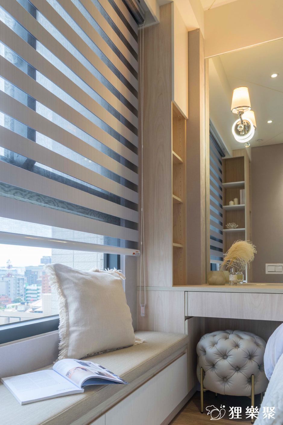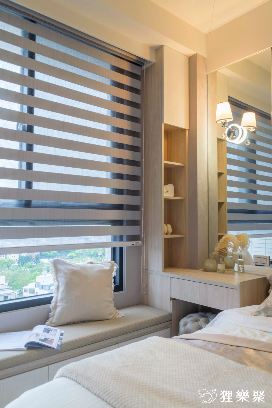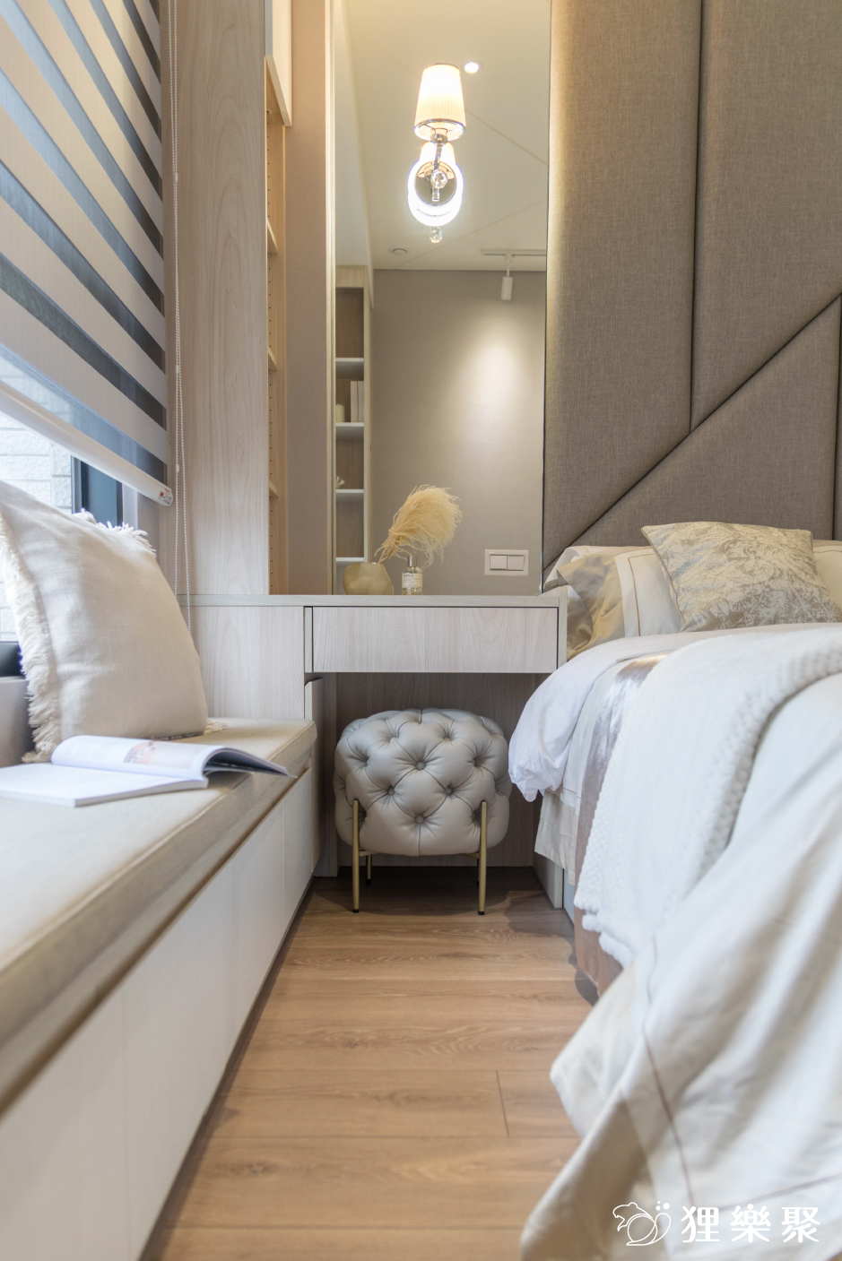 ▲ 床頭主牆同時整合化妝桌和窗邊臥榻