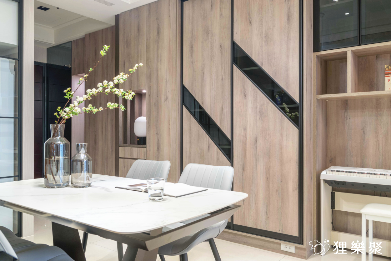 ▲ 木紋色板材和黑色鋁框門讓空間多一份家的溫馨感