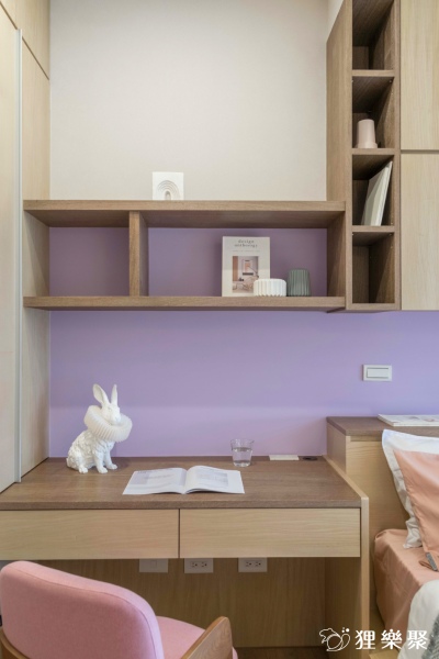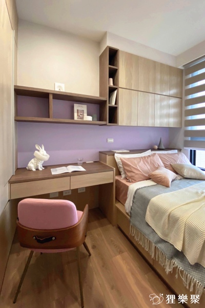這個三房兩廳兩衛的新成屋設計是為一家四口規劃,主臥室和兩間小孩房都依據各自的喜好做設計,同時也滿足了機能性的需求,主臥室的重點在於床頭主牆的設計,同時整合化妝桌和窗邊臥榻;而小孩房則是在有限的空間內做最大化的收納容量,讓雜物都能盡量隱藏在櫃子內,維持視覺上的清爽;公共區域的部分同樣設計大量櫃體,並規劃了電子琴的空間,解決了多數小家庭都會有的收納問題。延伸閱讀:<< 裝潢該找統包或室內設計師?先看看差異再選擇! >>