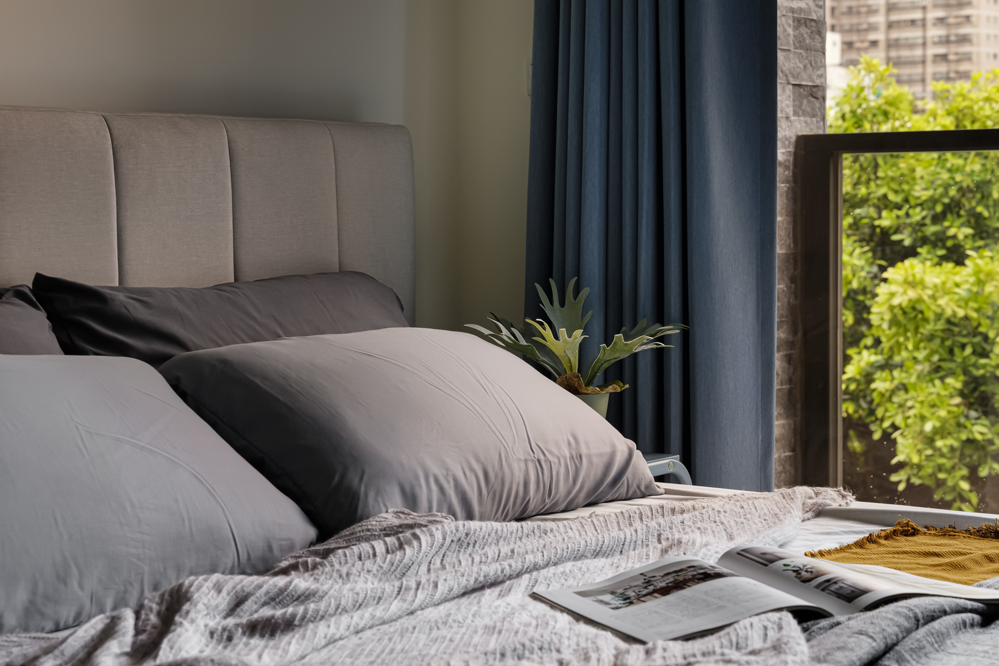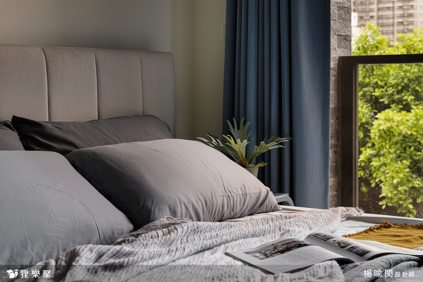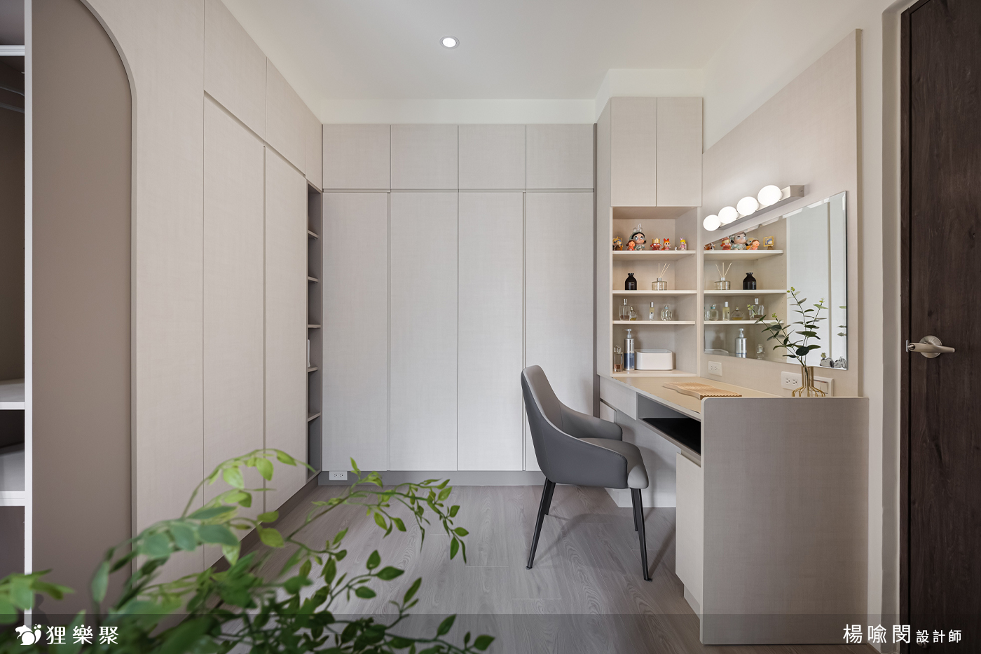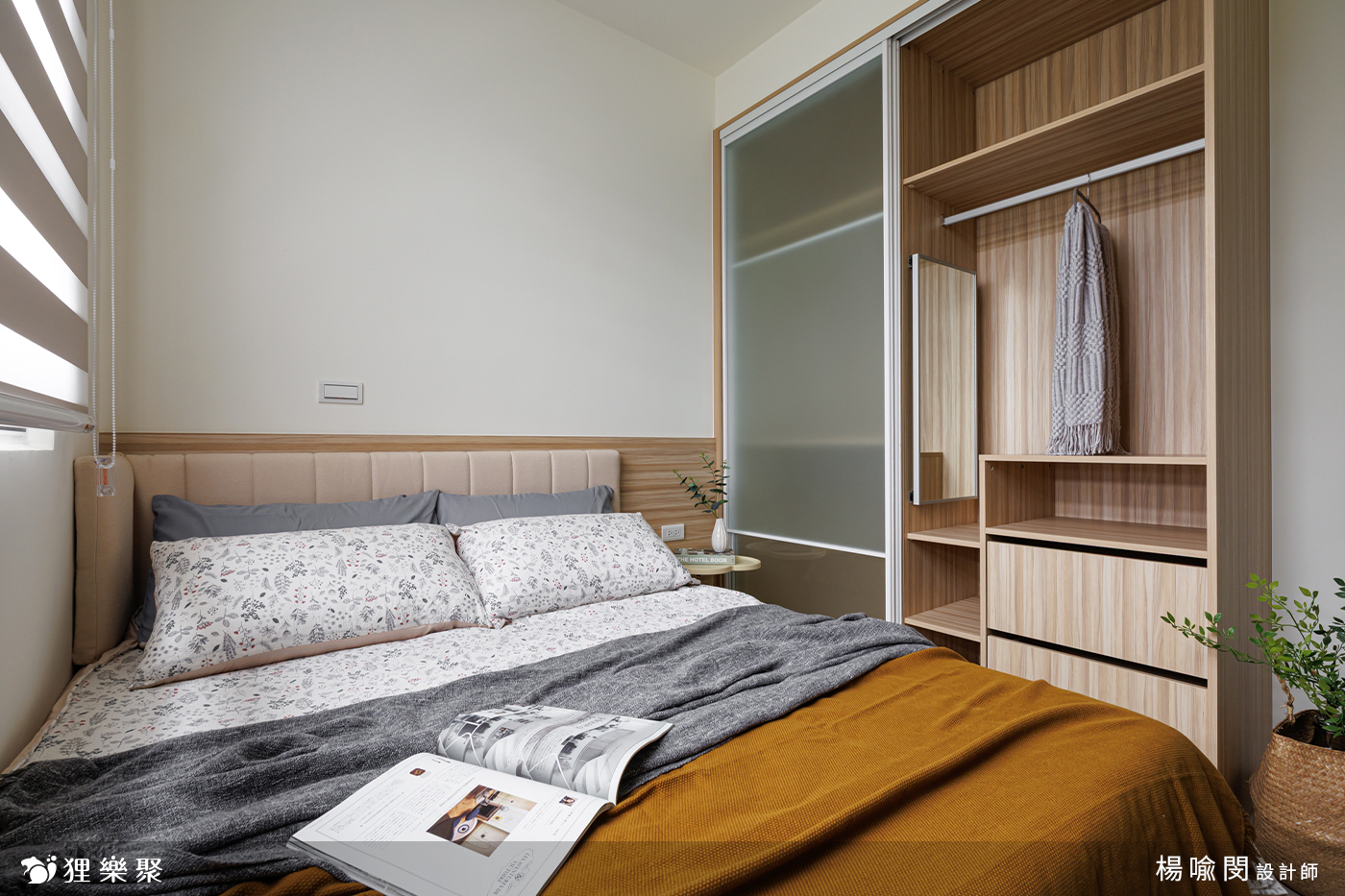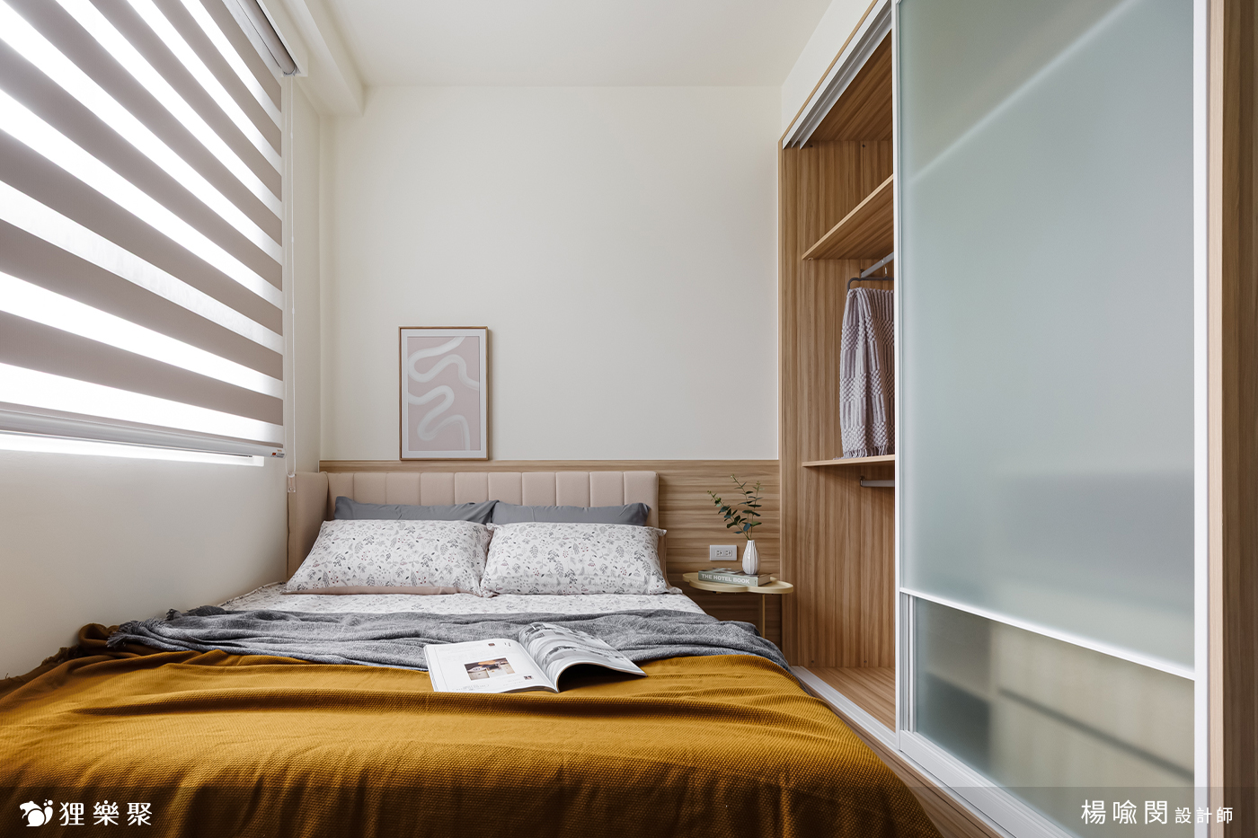主臥室以奶油風為基調,搭配溫柔的燕麥色、弧形小沙發與輕盈家具鋪陳,襯上床頭兩盞暖光壁燈,使空間如包裹於雲朵般療癒,打造舒適的奶油北歐睡眠氛圍。男孩房以現代風格為主體,透過幾何造型跳色牆面,結合簡約現代感收納家具,展現充滿活力的年輕語彙,搭配北歐木質元素彰顯年輕人獨有的個性感與創造力。