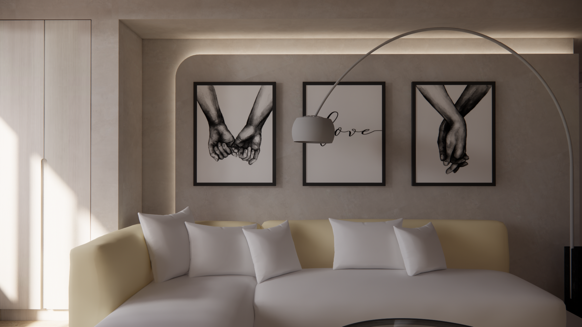 設計理念:小小新婚家庭,給予回家舒適的空間,耐看又不失質感的色調,達到心靈回家的安定感,小小的家也可以滿足所有生活所需。