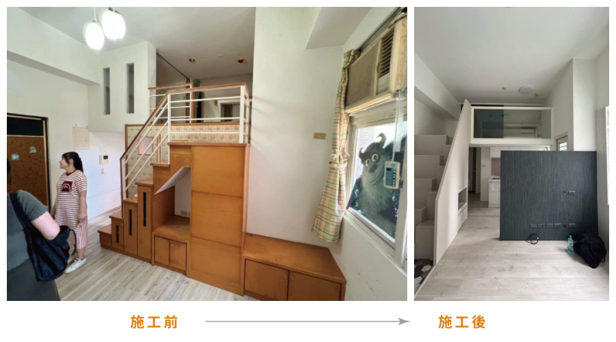 需求:舊屋翻新 風格:混搭風 坪數:16坪 格局:兩房兩廳一衛 屋齡:30年 預算:140萬 特殊需求:●混搭風格。 ●夾層及樓梯(交錯樓梯)