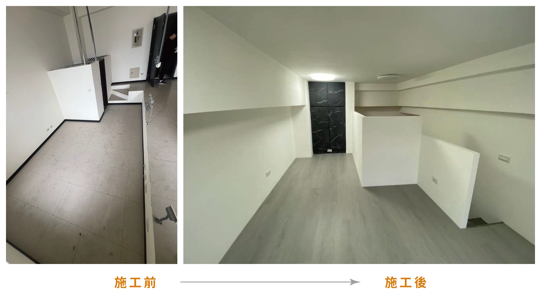 需求:舊屋翻新 風格:混搭風 坪數:20坪 格局:兩房兩廳一衛 屋齡:5年 預算:140萬 特殊需求:●夾層規劃。 ●灰白色系。