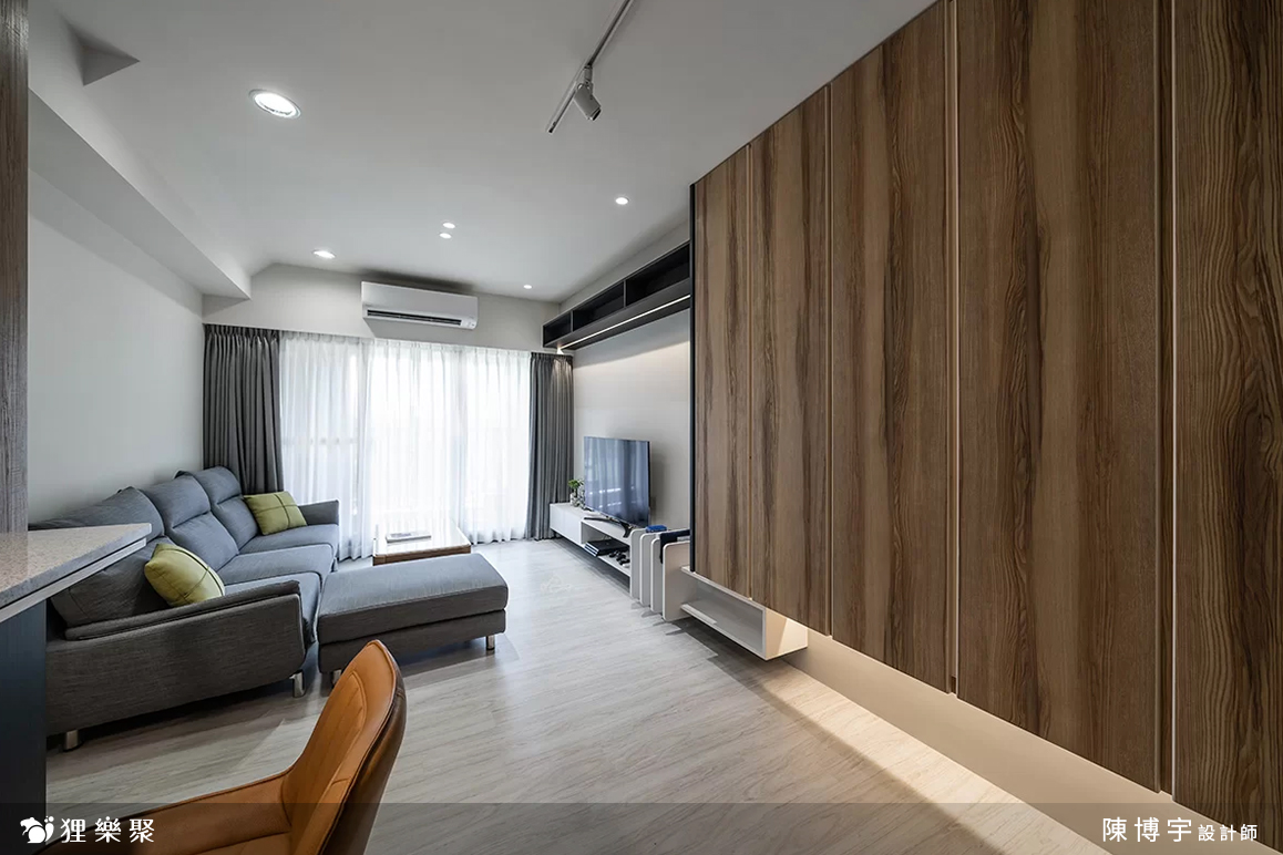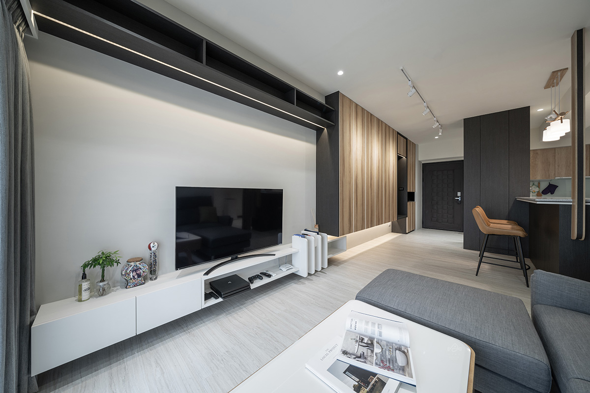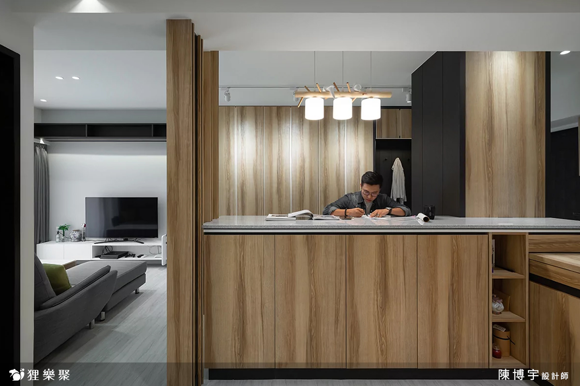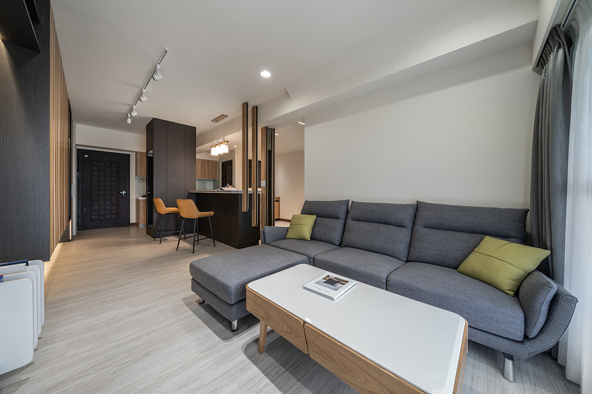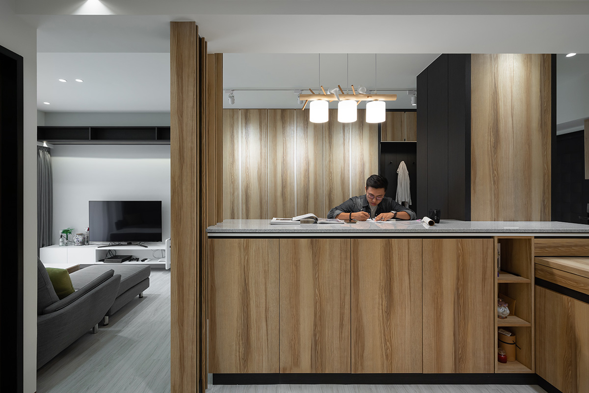 這是一個三房兩廳的新成屋裝潢,屋主希望這個現代簡約風不僅要耐看,也要為他們打造一些與眾不同的小亮點,比較特殊部分在於新成屋設計規劃需要一個多功能空間,提供屋主做彈性使用。臨木而居