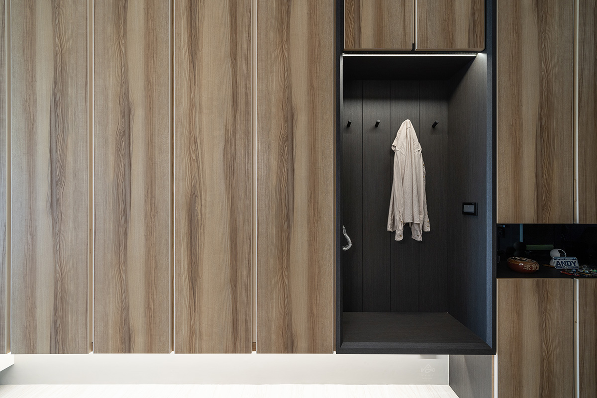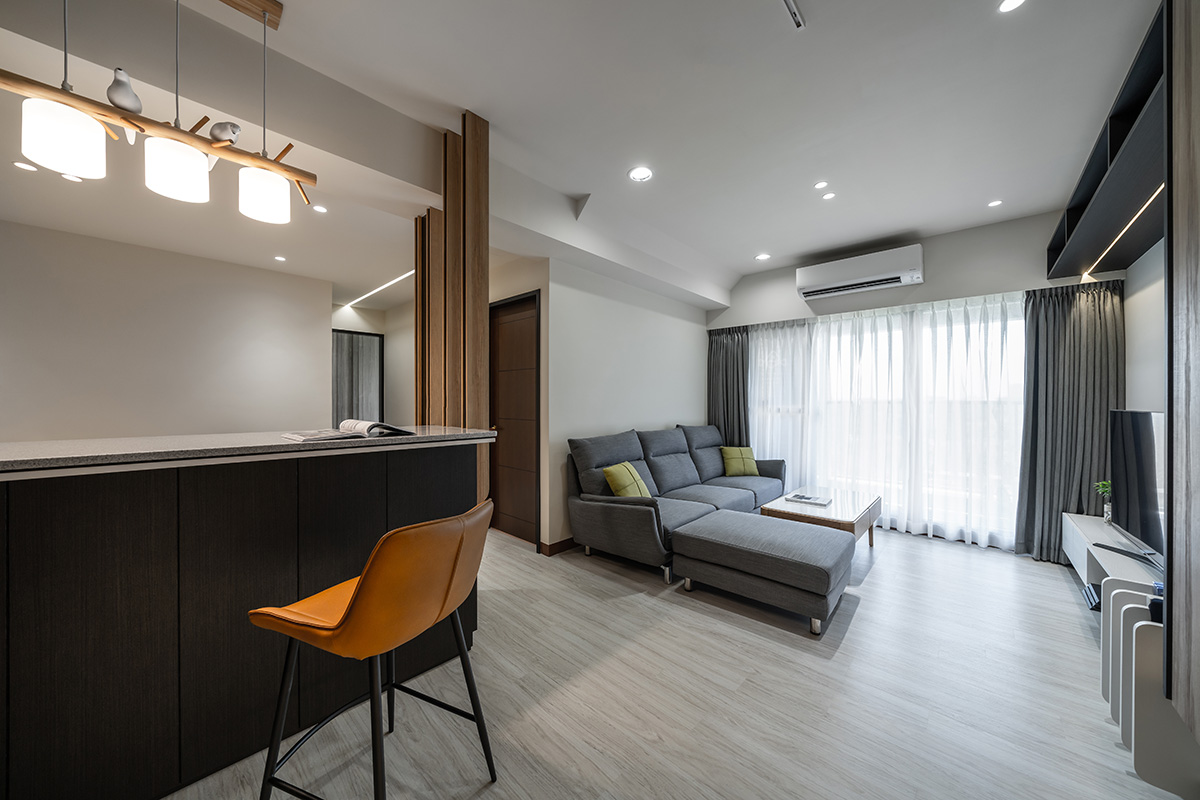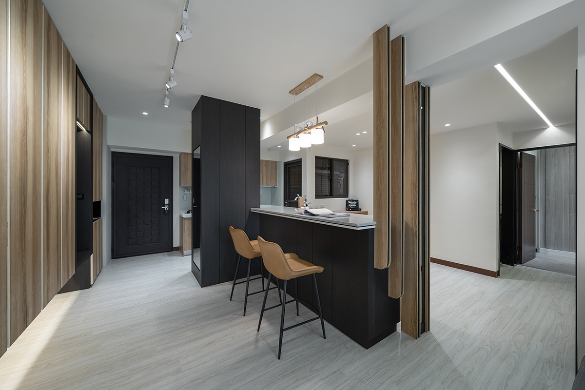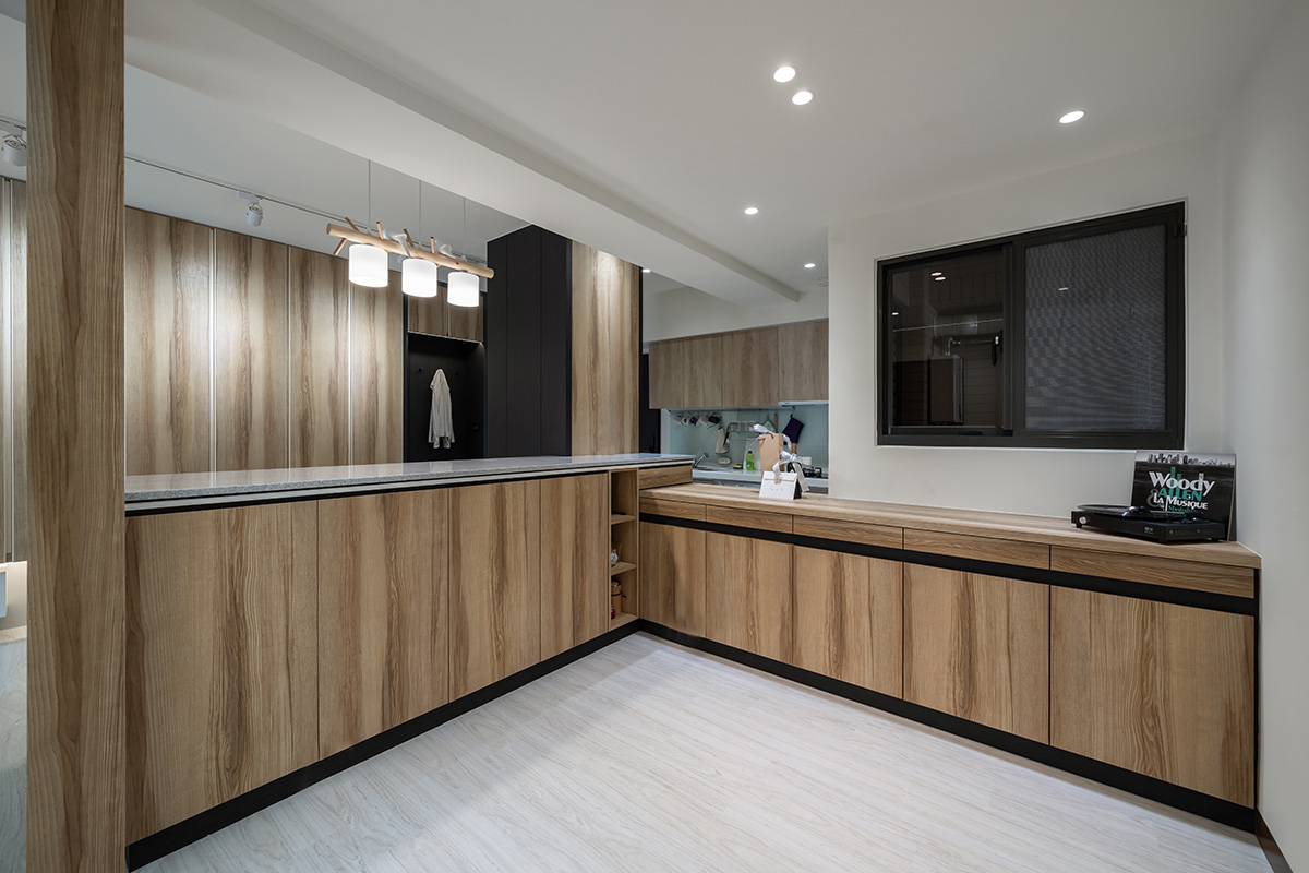 這是一個三房兩廳的新成屋裝潢,屋主希望這個現代簡約風不僅要耐看,也要為他們打造一些與眾不同的小亮點,比較特殊部分在於新成屋設計規劃需要一個多功能空間,提供屋主做彈性使用。臨木而居