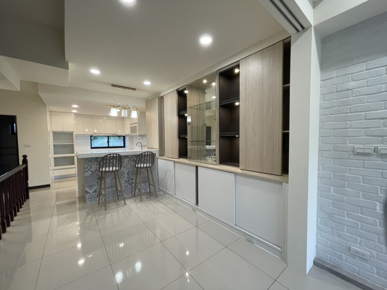特殊需求:四房三衛兩廳的格局,陽光、空氣是最主要的自由穿梭的動線,同時須考量大量的收納空間,典藏著安徒生童話,利用暖色調設計營造夢幻的城堡,取得絕佳平衡。