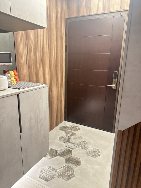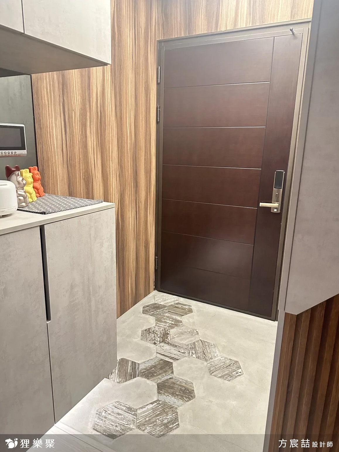 ▲ 淺色+木質調的玄關落塵區
